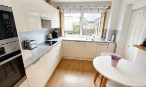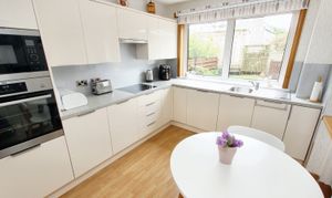 Nestled within an exceptionally desirable locale, this contemporary 3-bedroom semi-detached house is set within a quiet cul-de-sac location. The property boasts a stunning cream high gloss fitted kitchen complete with AEG integrated appliances, perfectly complemented by a spacious utility room. The delightful Lounge features a large picture window cascading the room in bountiful light. To the rear of the Lounge flows to the Dining room offering south-facing window and views to the lovely rear garden. From the rear of the Utility Room access leads to the Conservatory which adds versatility to the living space and provides connectivity to the fully enclosed south-facing rear garden. On the upper level are the three generously proportioned bedrooms all with fitted storage and the spacious shower room.