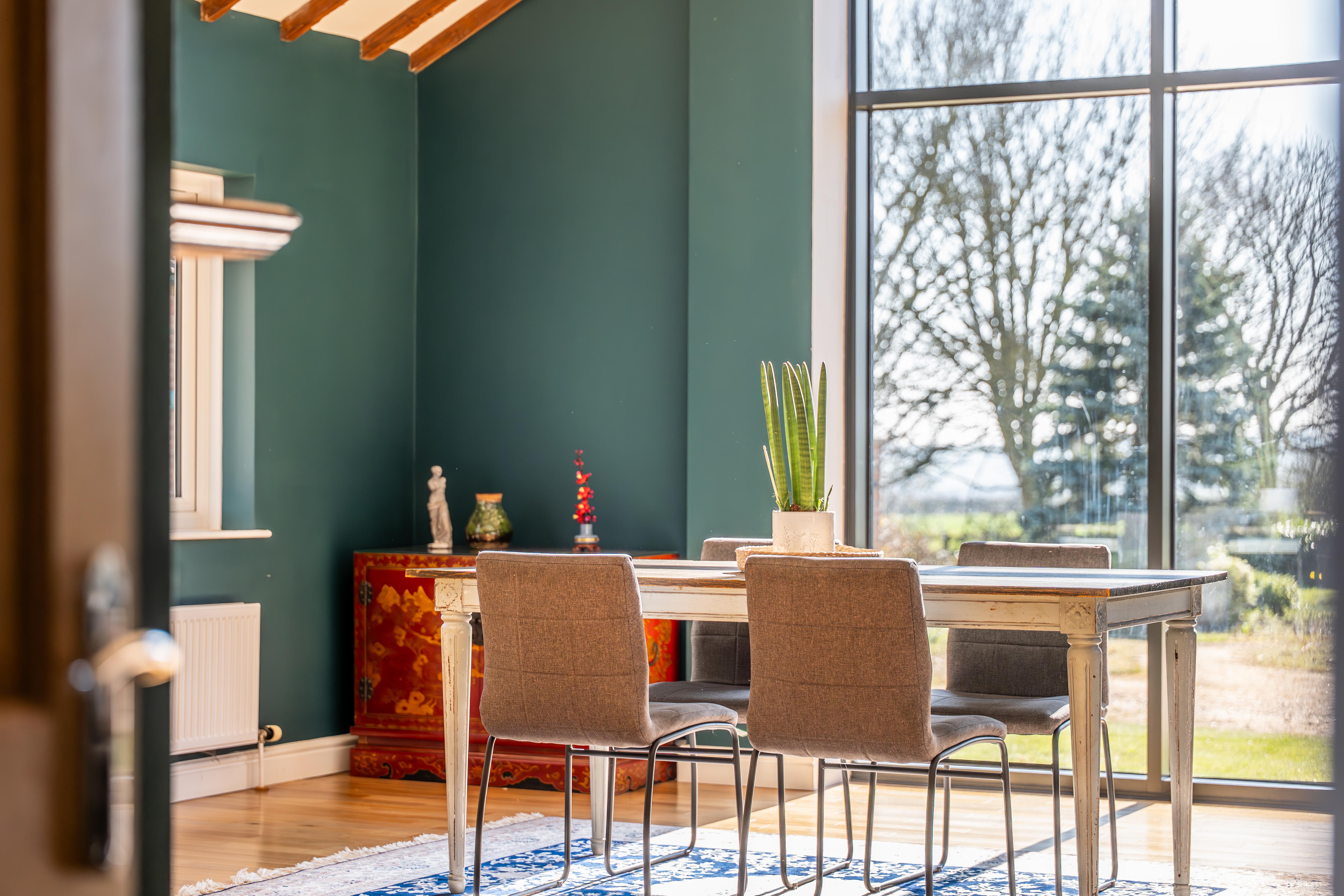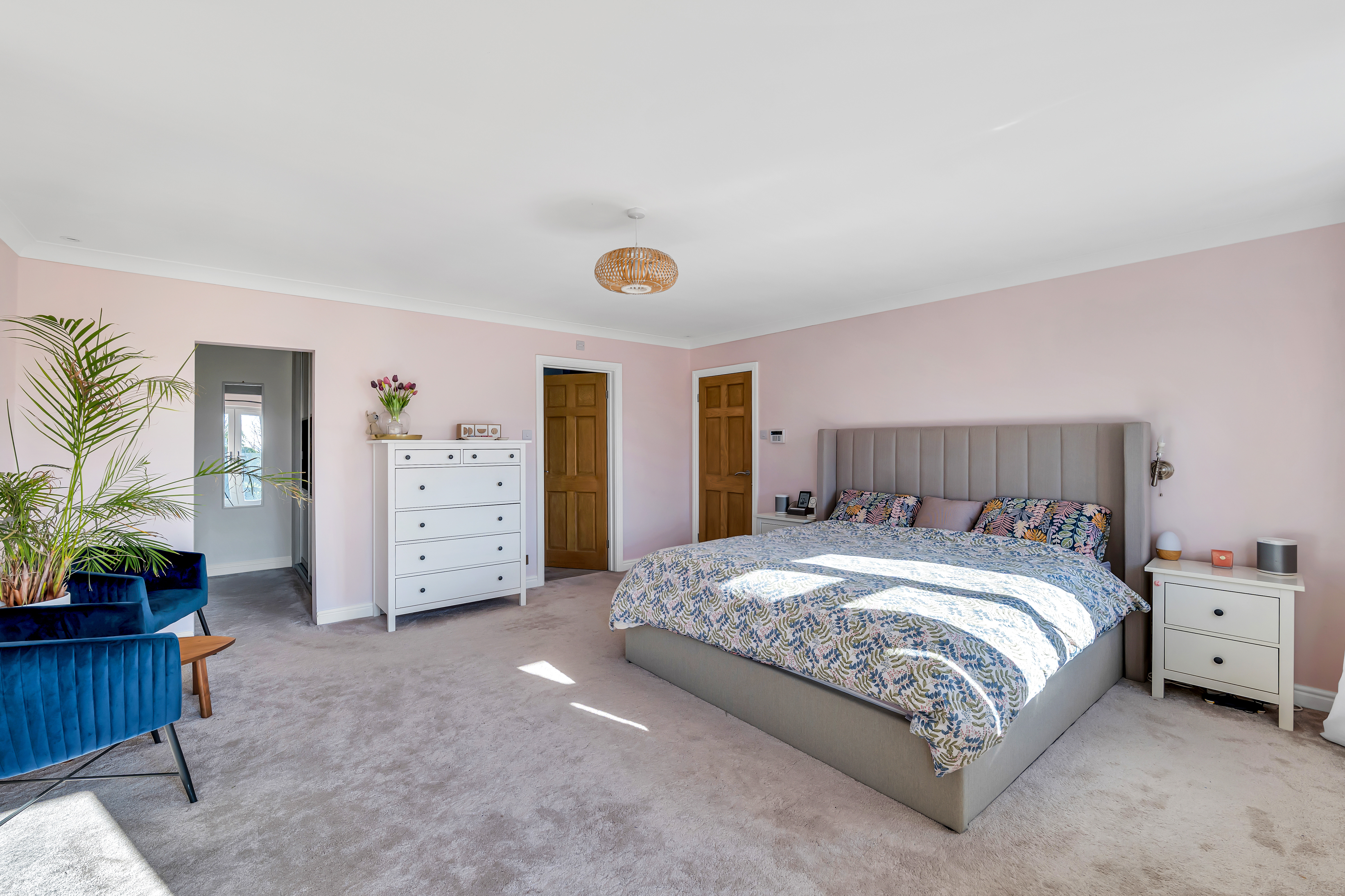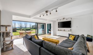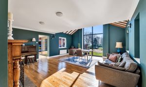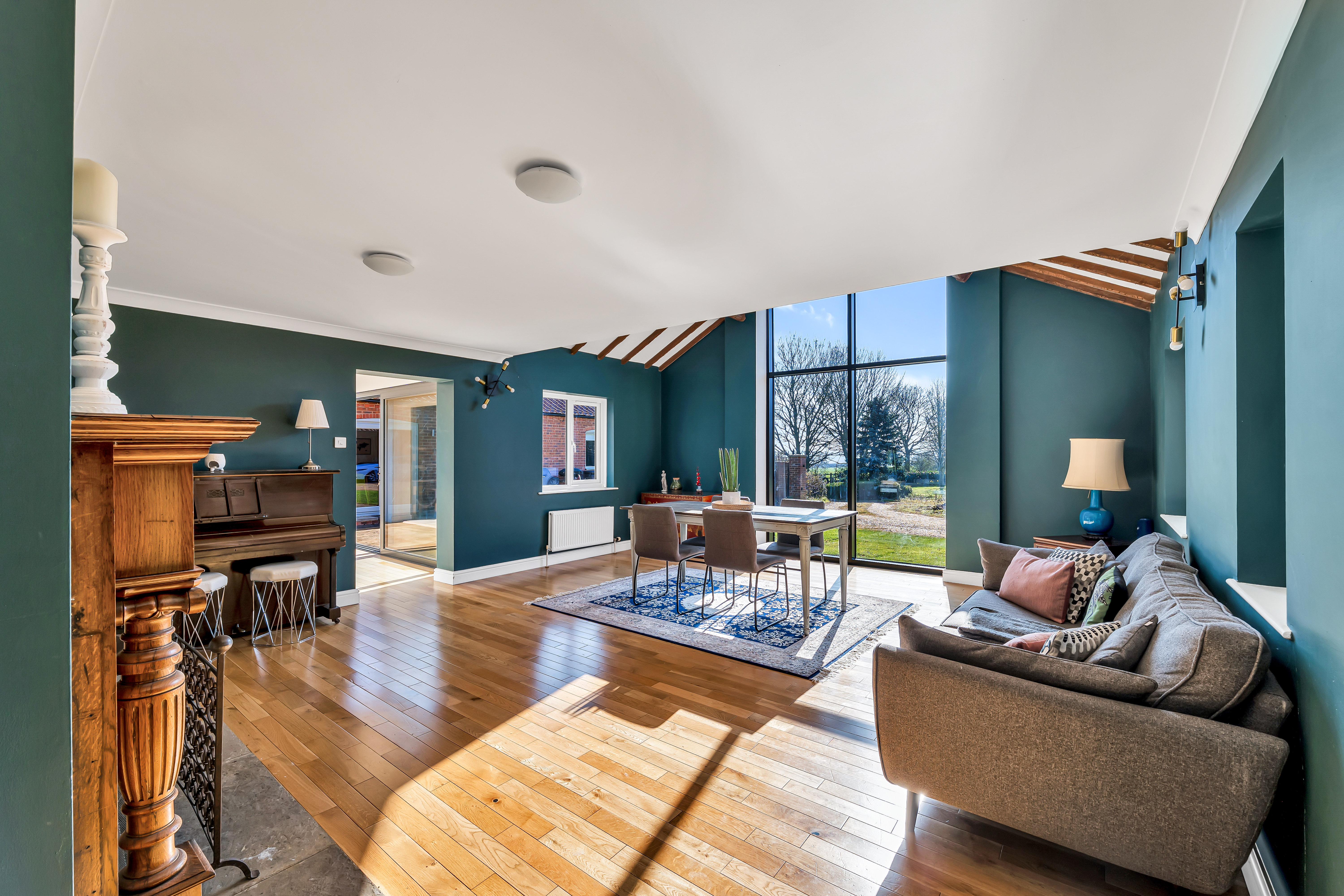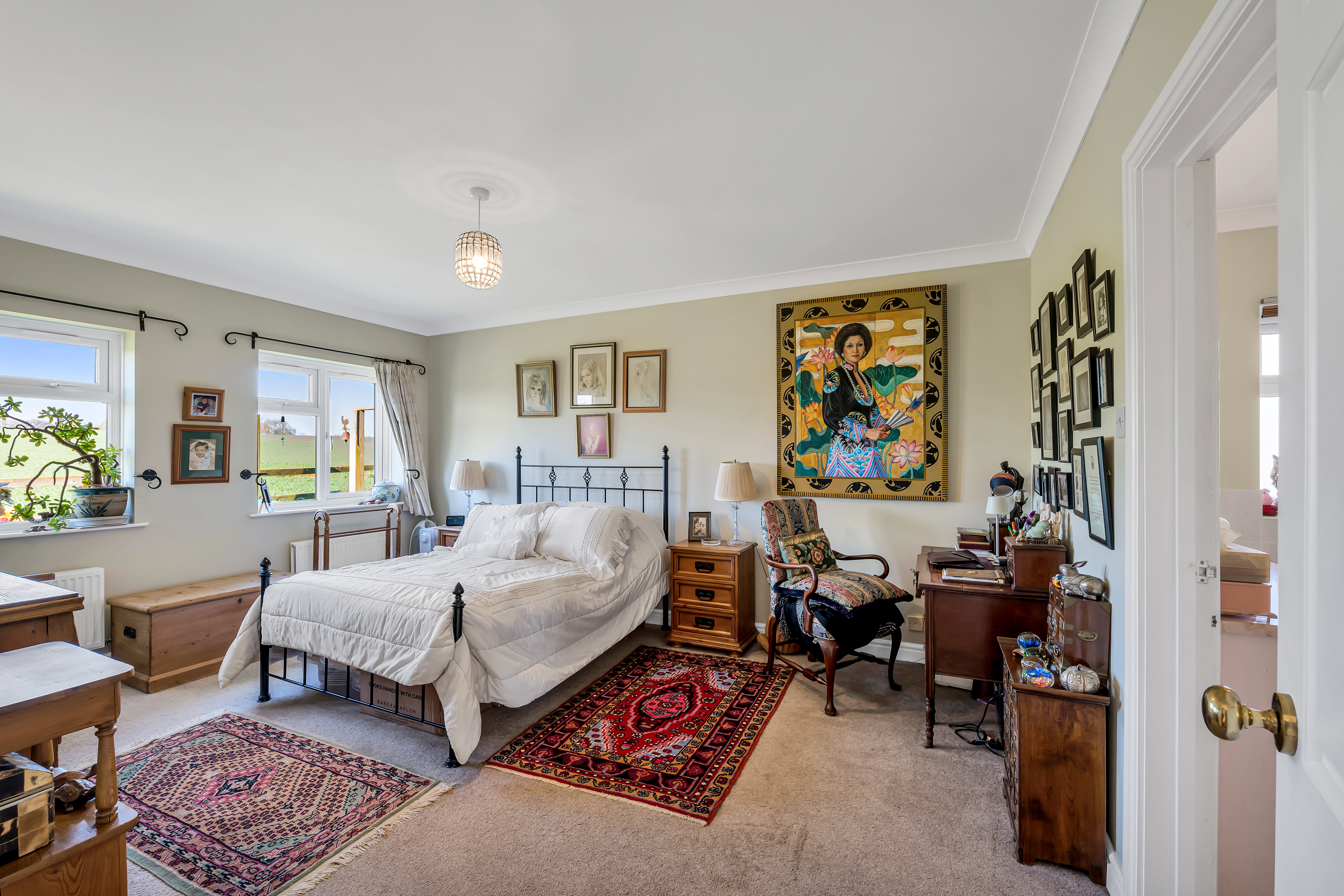 Upstairs, you’ll find five generous double bedrooms in the main house, two of which have their own en-suites. There’s also a stylish family bathroom. Every room feels bright and inviting, with views across open fields adding to the sense of peace and space.
