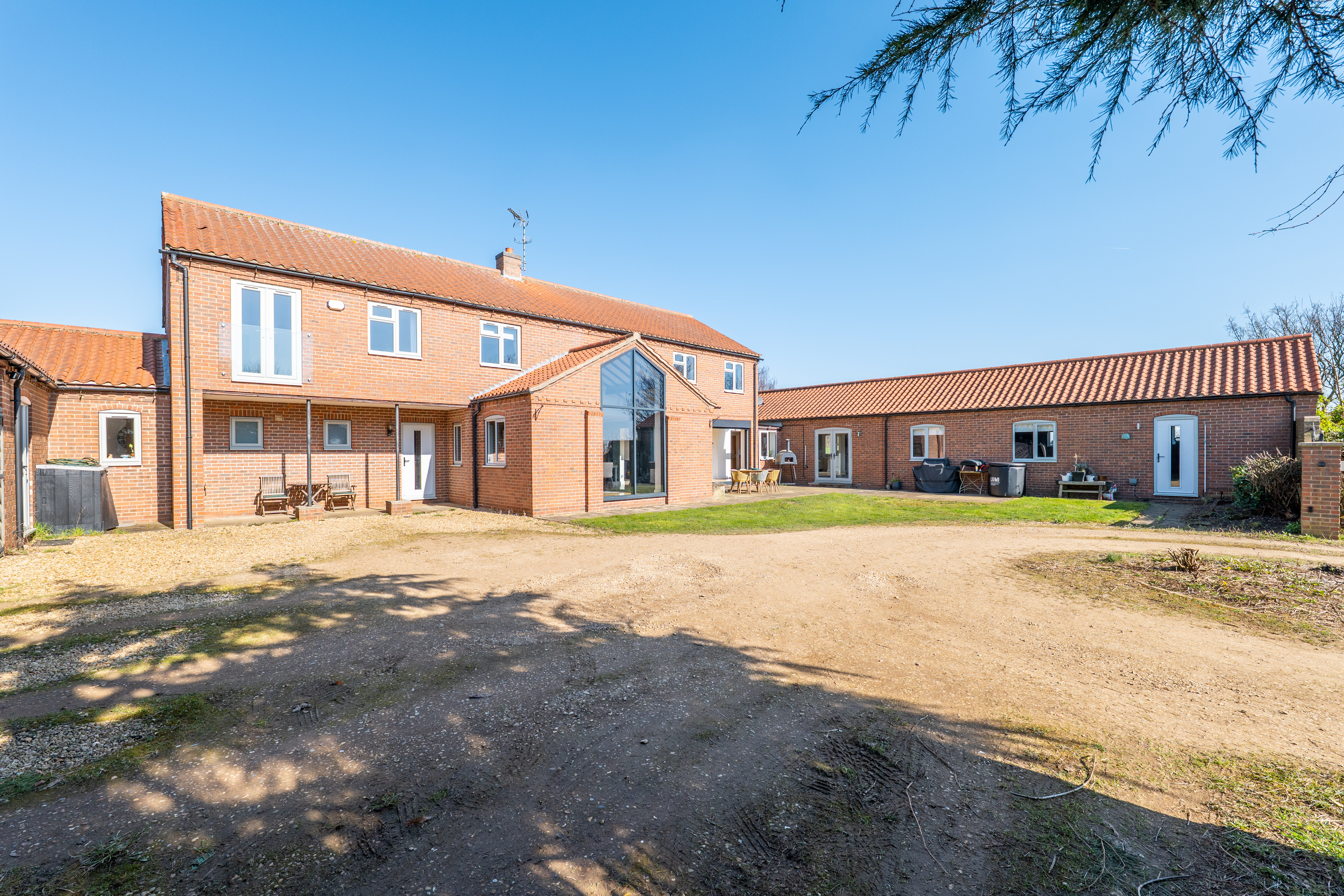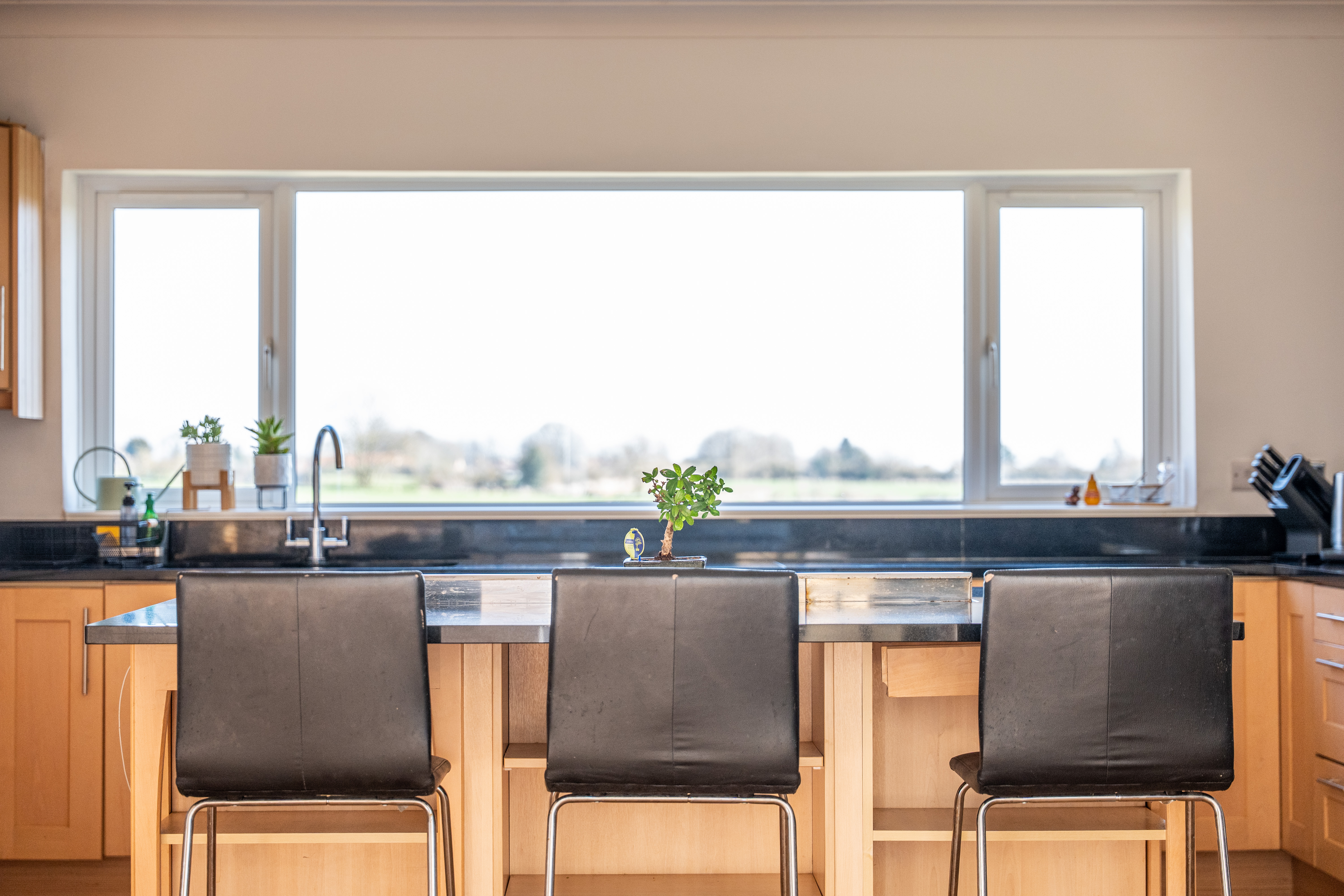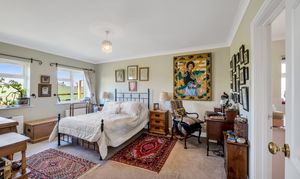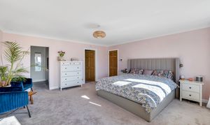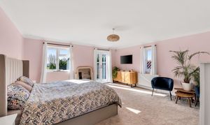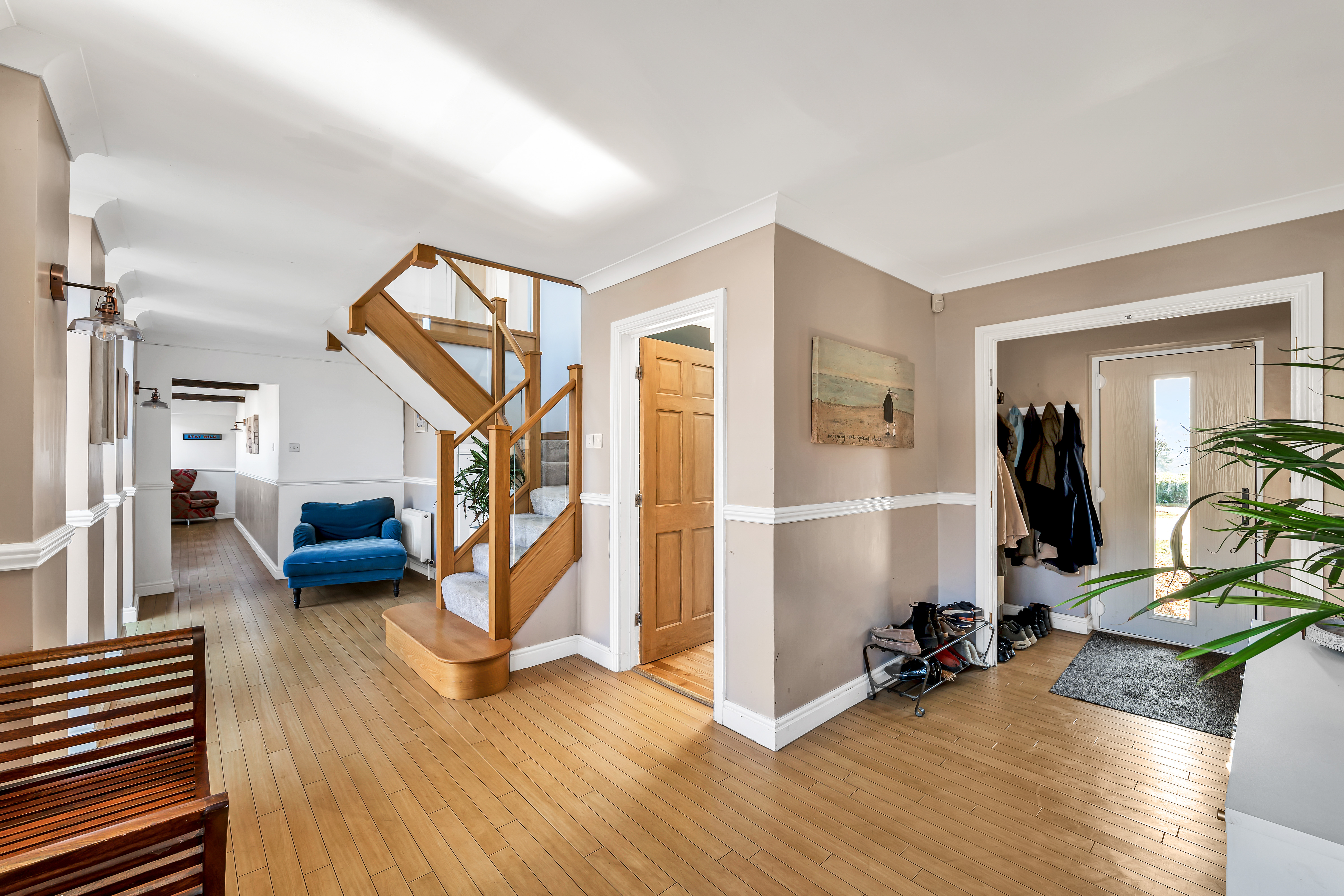 Upstairs, you’ll find five generous double bedrooms in the main house, two of which have their own en-suites. There’s also a stylish family bathroom. Every room feels bright and inviting, with views across open fields adding to the sense of peace and space.
