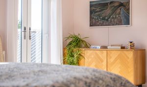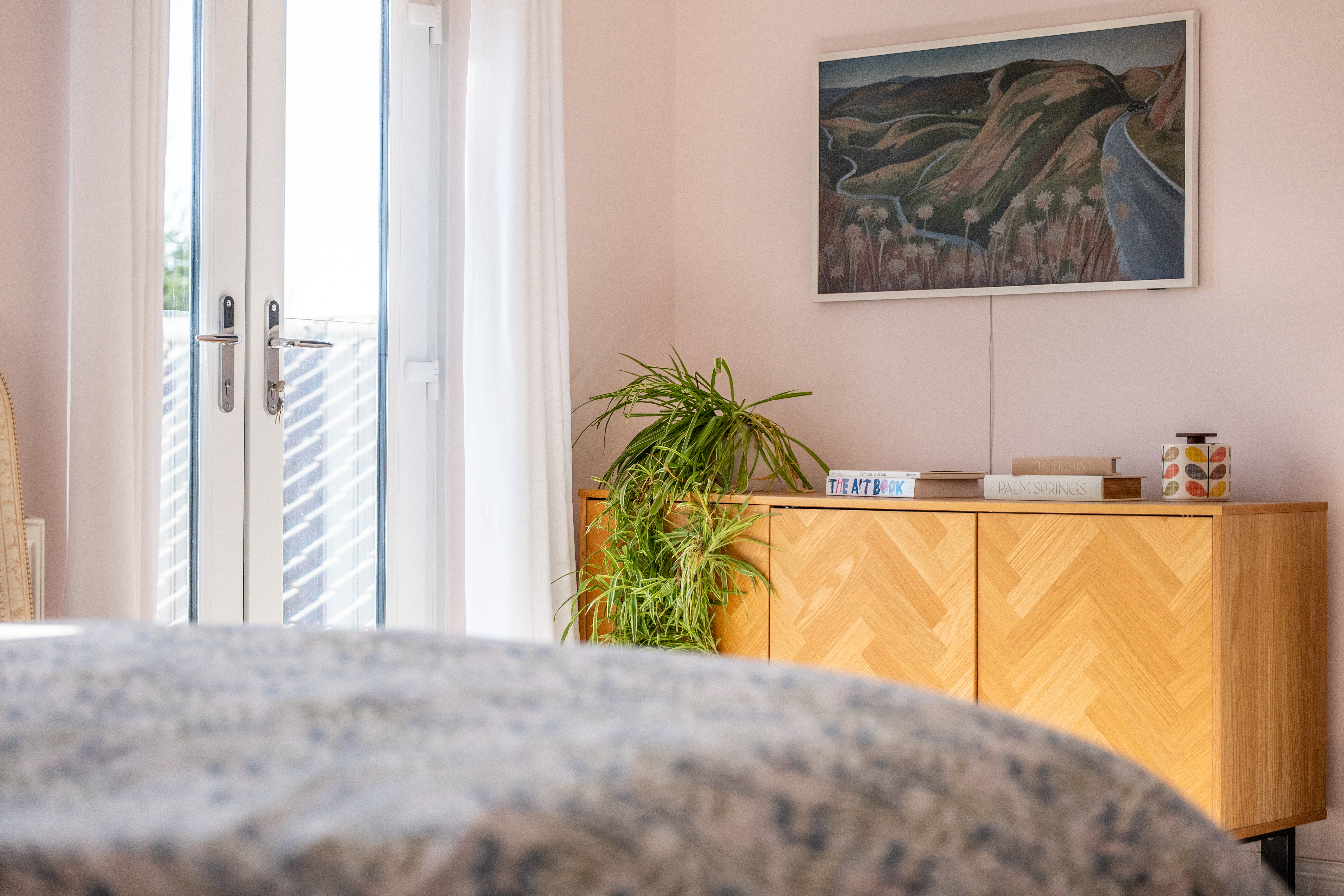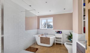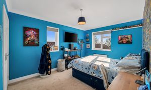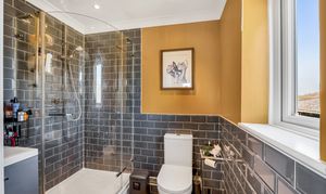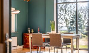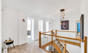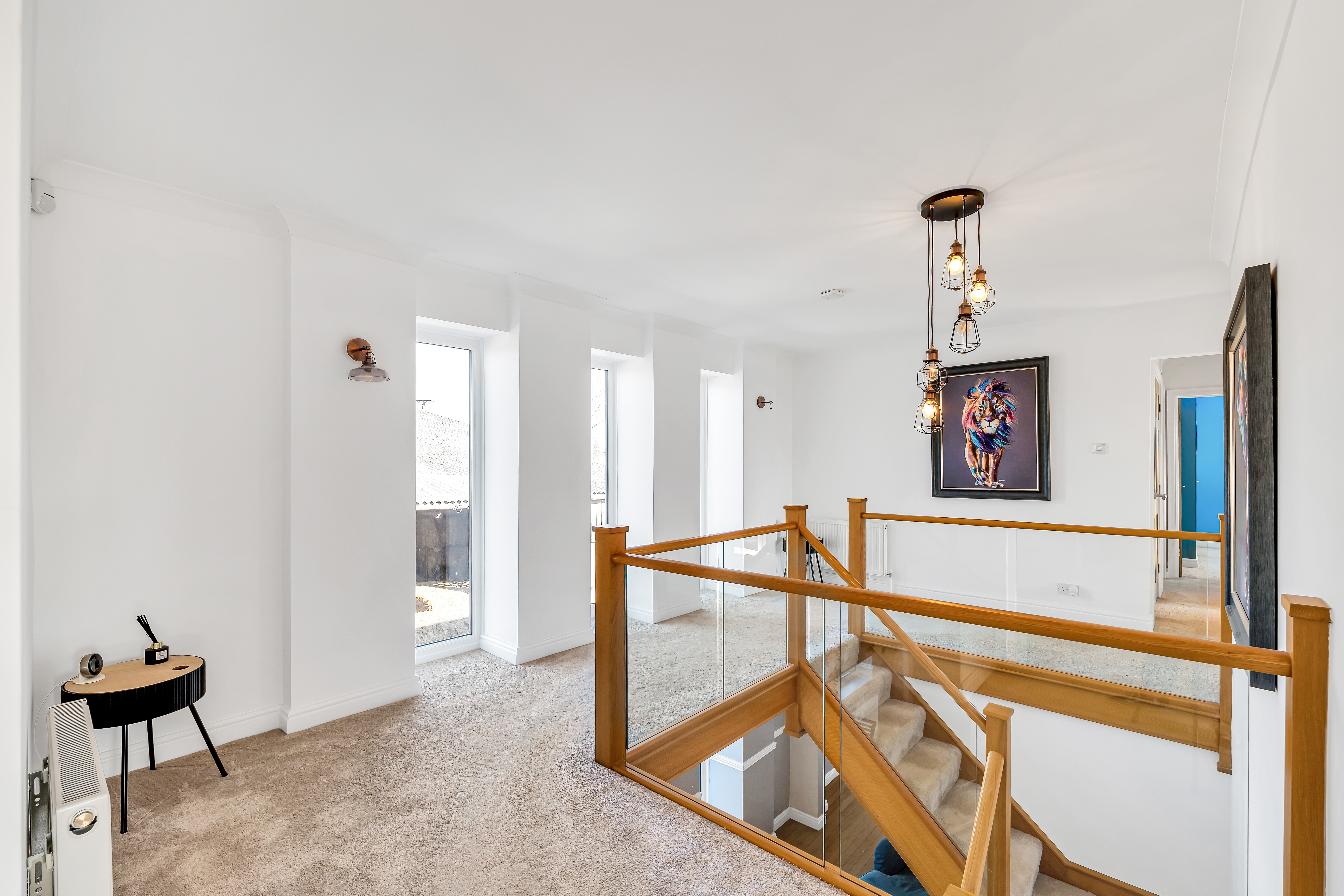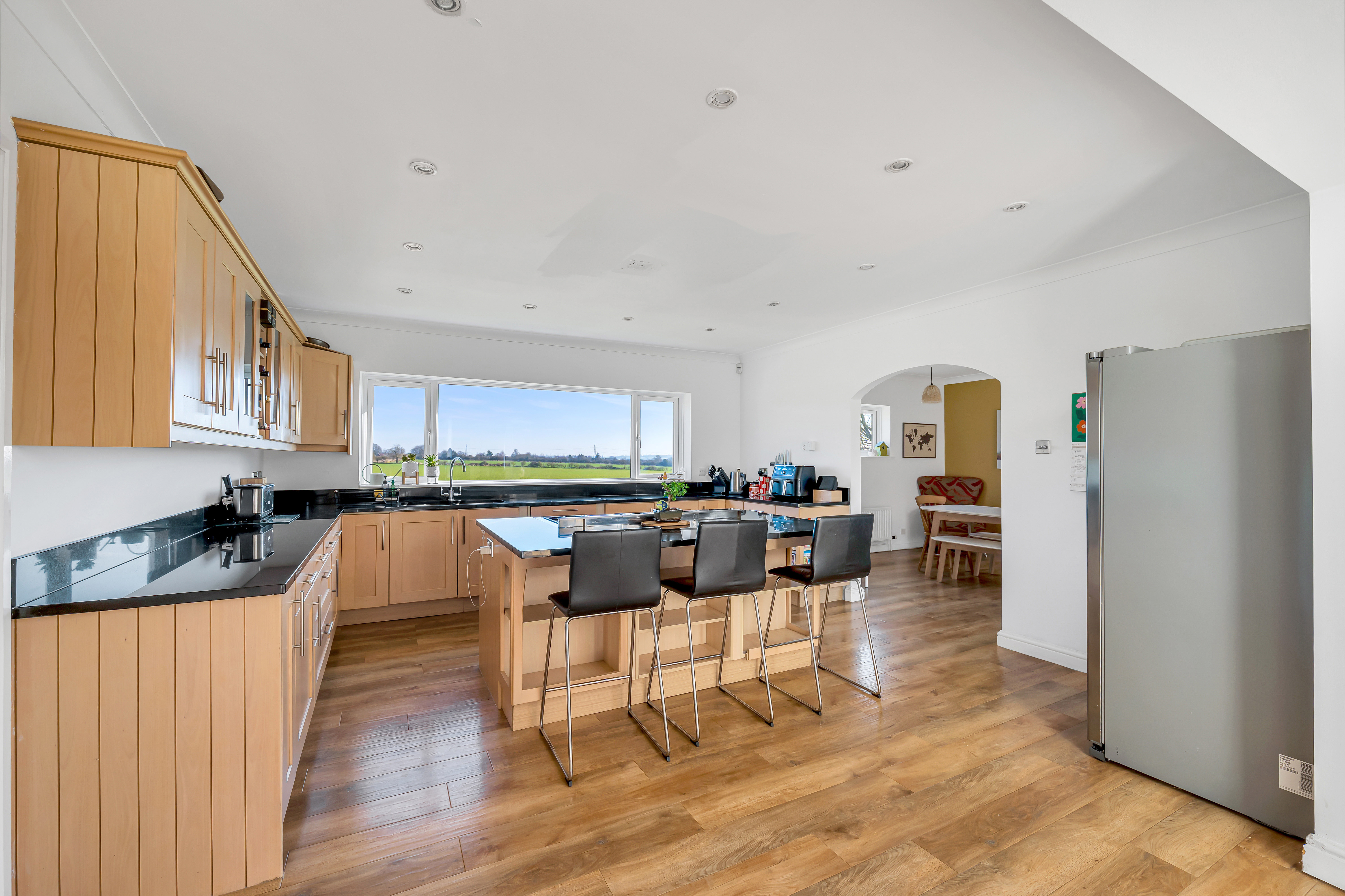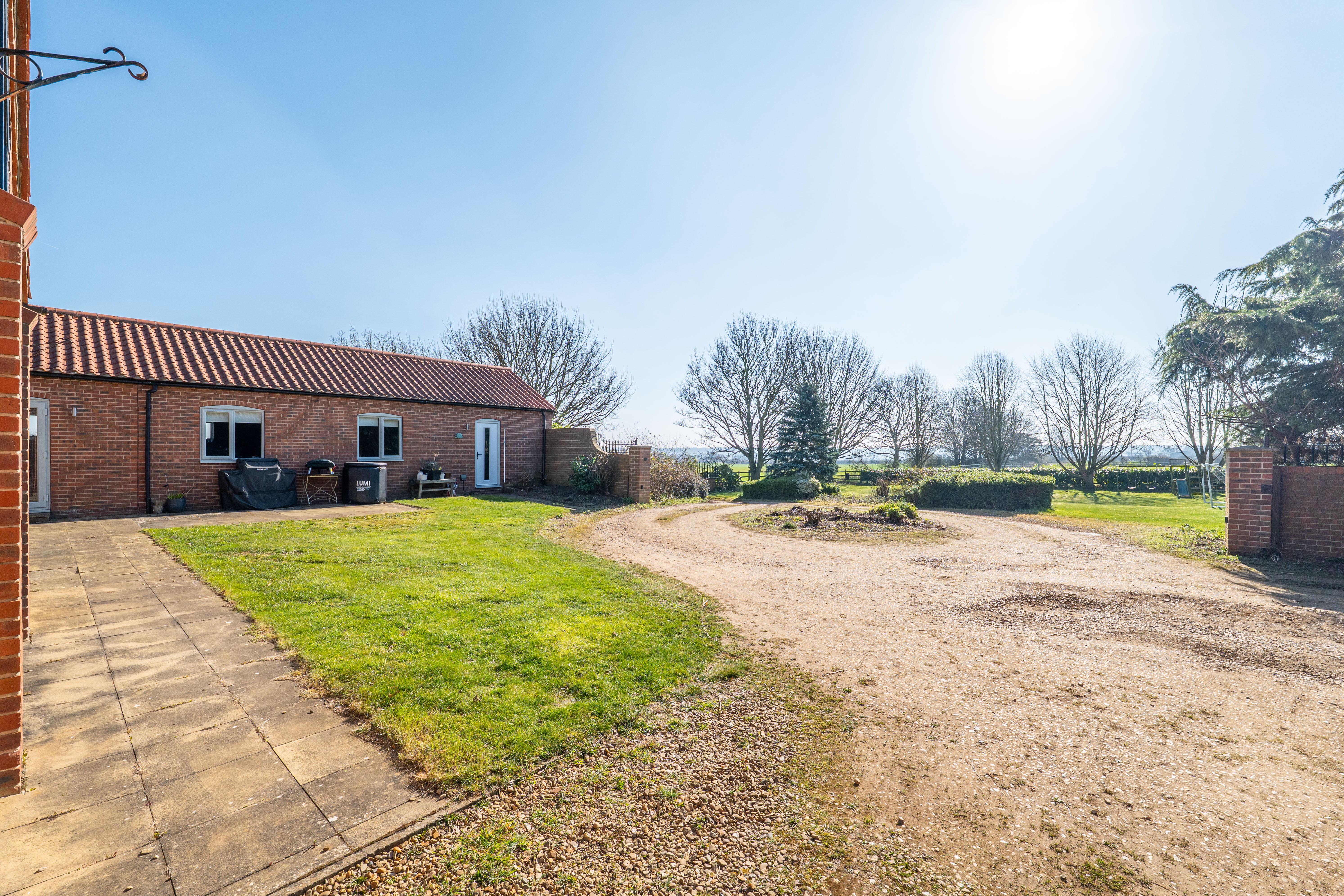 Upstairs, you’ll find five generous double bedrooms in the main house, two of which have their own en-suites. There’s also a stylish family bathroom. Every room feels bright and inviting, with views across open fields adding to the sense of peace and space.