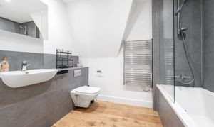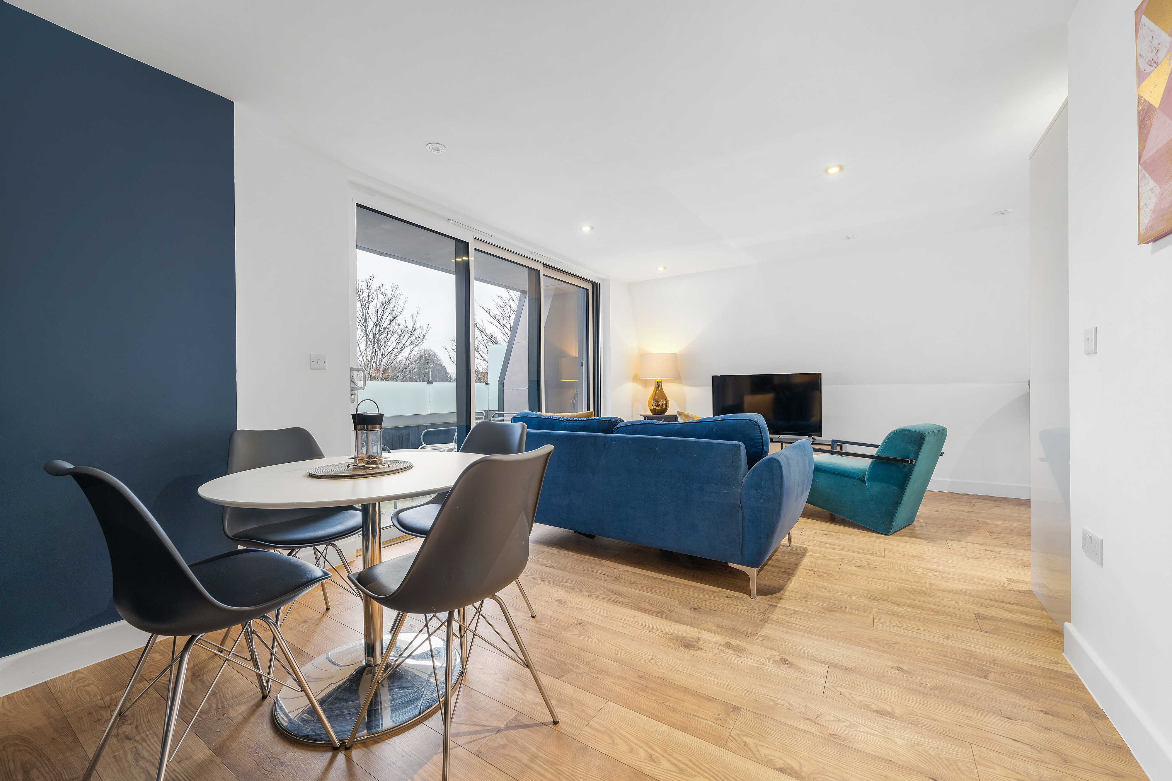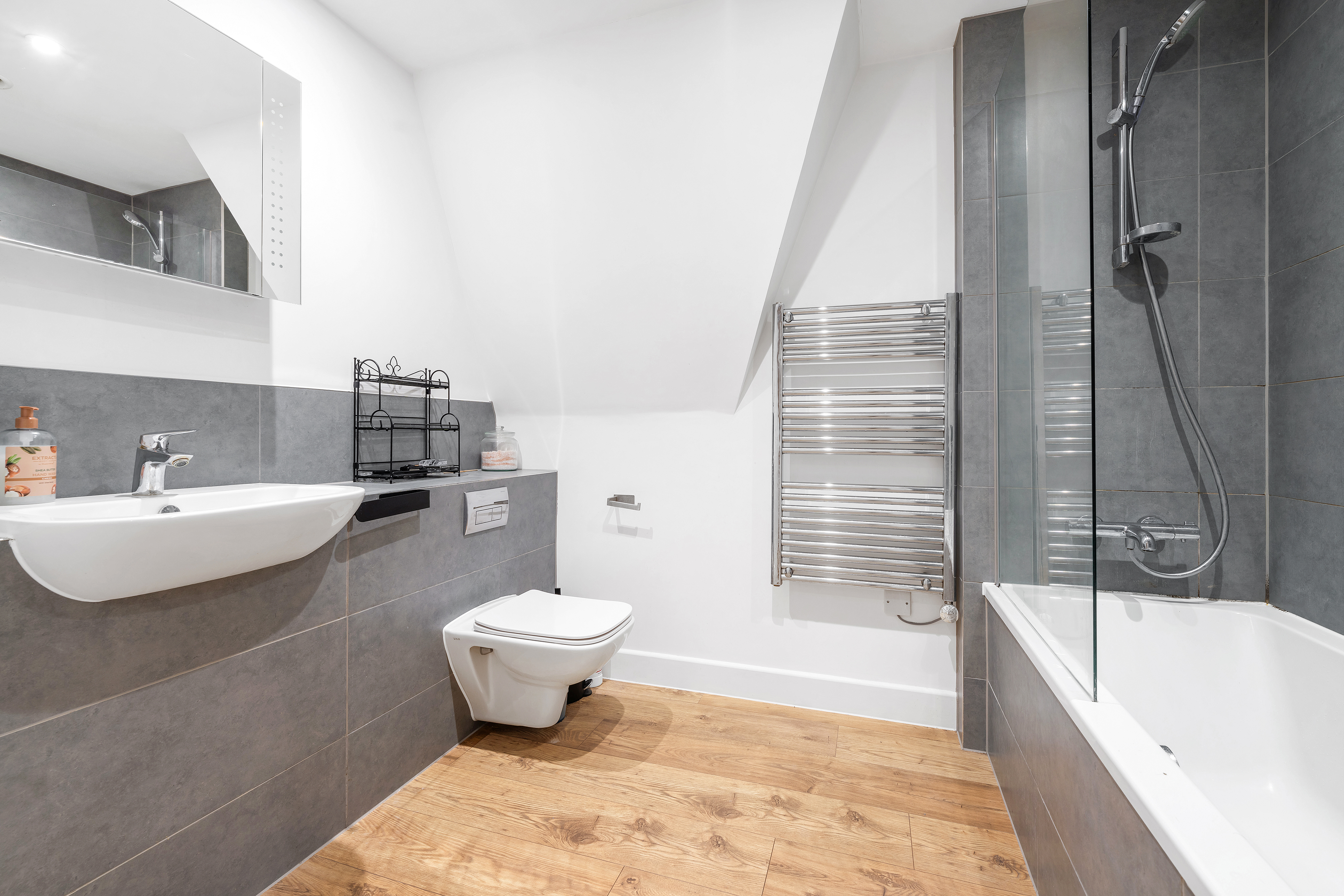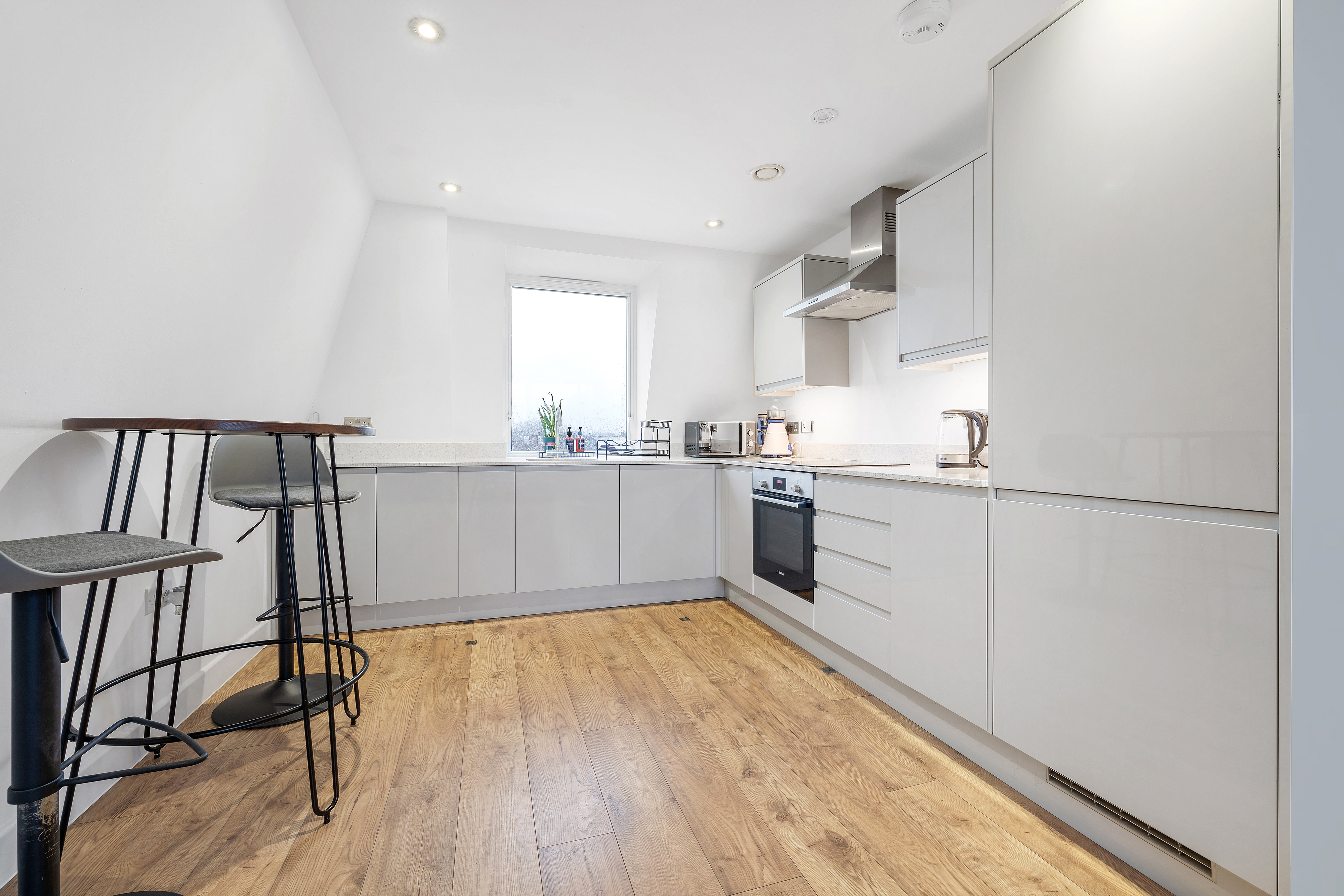 The apartment is one of twelve and is naturally bright and spacious boasting engineered wood flooring, a contemporary designed modern kitchen with fully integrated appliances and a spacious open-plan living area which offers a great entertaining space. The 13ft bedroom has built-in sliding wardrobes and the bathroom has a wall hung hand wash basin, bath with shower over and screen and heated towel rail.