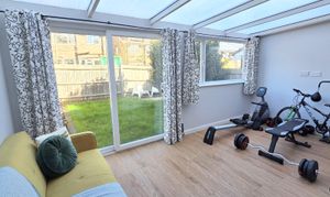 Front and 21' x 21' Rear Gardens laid to patio and lawns with gated side access.