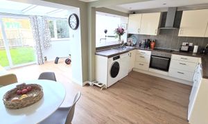 Enlarged Entrance Hall with stairs to first floor. Living Room overlooking front garden. Extended open plan Kitchen / Dining / Family Room Kitchen fitted with a range of units and workspace, space for appliances and dining table plus Family Area with sliding doors onto the garden.