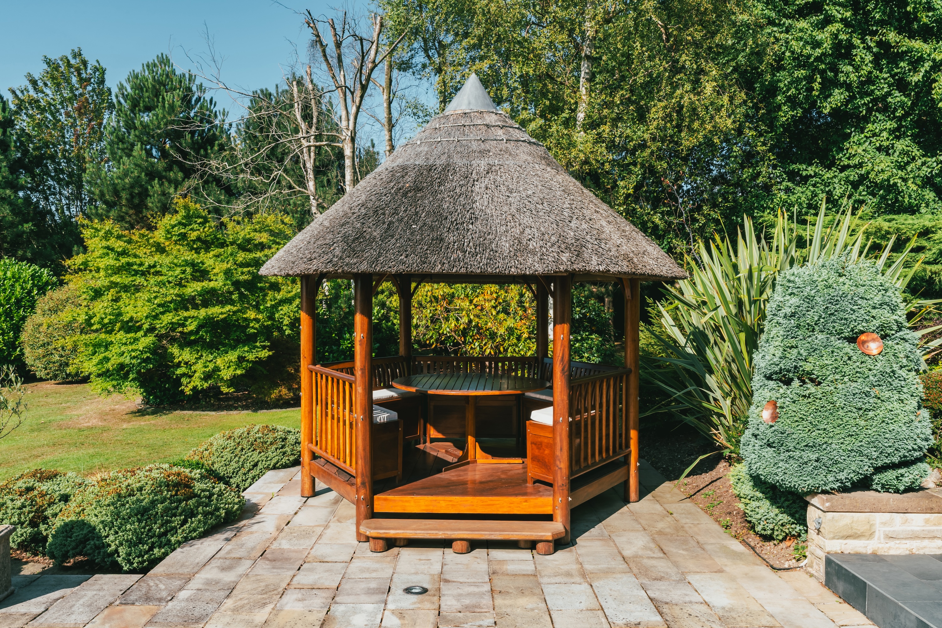 The property is surrounded by immaculately maintained gardens, with sweeping lawns, mature planting and multiple terraces positioned to enjoy the peaceful setting.