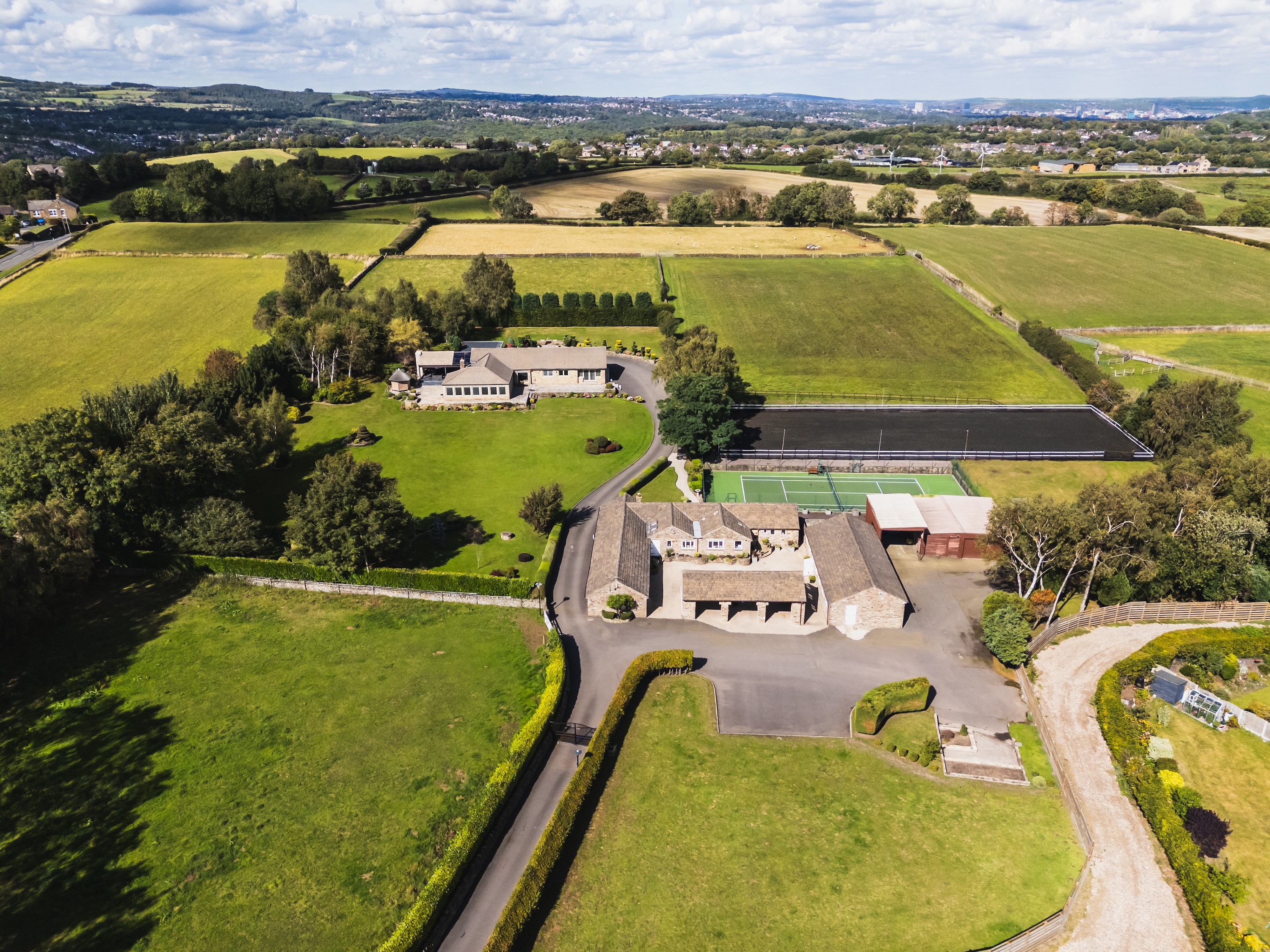 A remarkable countryside residence set within an exclusive private estate in Dronfield Woodhouse, The Ranch House offers an exceptional standard of single-level living surrounded by beautifully maintained gardens and open countryside. Tucked away behind intercom-operated gates and approached via a sweeping driveway, this impressive four-bedroom home combines luxurious interiors with outstanding entertaining spaces, all within easy reach of Sheffield, Chesterfield and the Peak District.