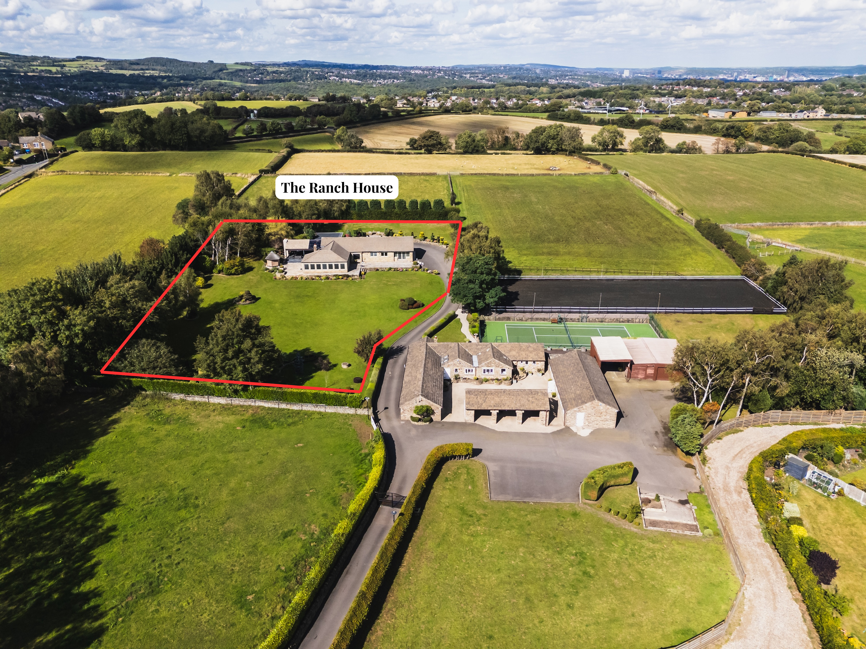 The Ranch House sits within a remarkable private estate, with the wider grounds incorporating grazing land and additional facilities. Depending on arrangements, residents may also have the opportunity to enjoy amenities such as the full-size tennis court set within the grounds, further enhancing the lifestyle appeal of the property.