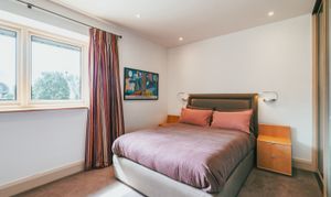 The bedroom accommodation is thoughtfully arranged along a separate hallway. The principal suite benefits from garden views, a dressing room, a walk-in wardrobe and a beautifully appointed en-suite shower room, while three further well-proportioned bedrooms are served by a luxurious family bathroom - with both bathrooms featuring premium fittings and underfloor heating.