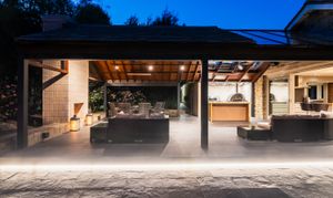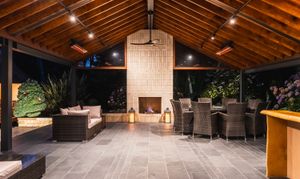 A particular highlight is the spectacular covered outdoor kitchen and entertaining area, designed for year-round use. Complete with a FireMagic barbecue, Alfa pizza oven, preparation island and seating areas, this impressive space also features ceiling heaters, lighting and a striking log-effect fireplace, creating the perfect environment for hosting family and friends.