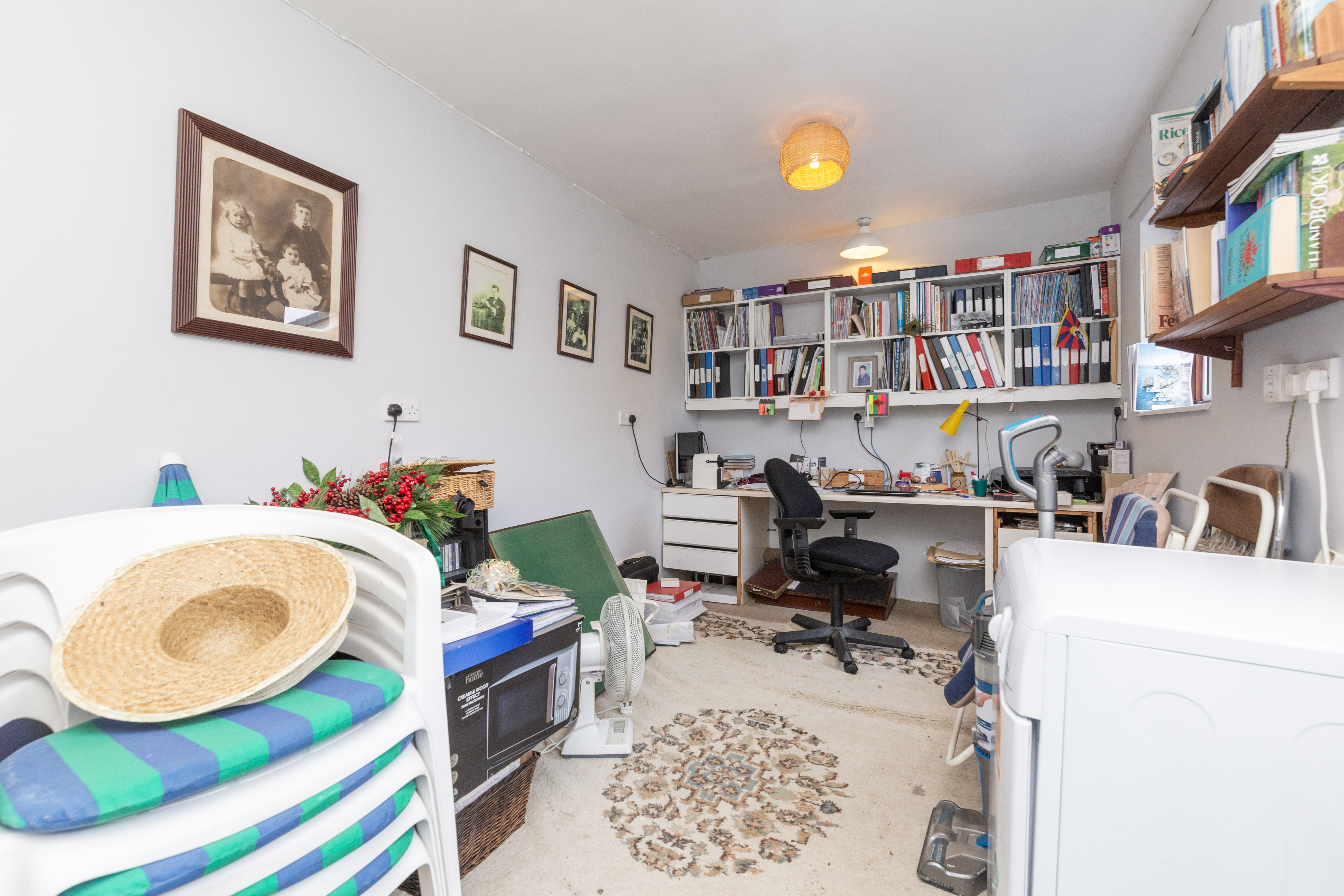 There are three well proportioned bedrooms, including a generous principal bedroom that offers a calm and comfortable retreat. Two bathrooms provide convenience and flexibility for family life or visiting guests. In addition, there is a versatile external office space, currently arranged as a home office, ideal for remote working, hobbies or even a gym or studio.