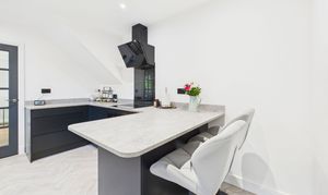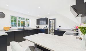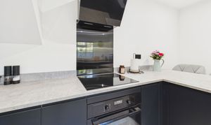 - The heart of the home is the stunning kitchen with integrated appliances and sleek units and worktops.