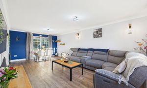 The welcoming hallway guides you into a spacious lounge that’s currently set up as a lounge diner, offering ample room for family gatherings, movie nights, or simply stretching out and relaxing after a busy day. Flowing from the lounge is a bright conservatory, a versatile space that could be your new reading nook, playroom, or even a spot for your morning coffee, all while enjoying the tranquil outlook.