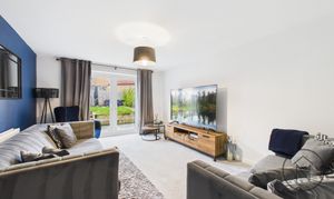The ground floor features a welcoming hallway that leads to the dining room, a bright and airy lounge with French doors opening onto the garden, and a modern kitchen with a breakfast area. The integral garage can also be accessed from the hallway, providing practical storage as well as secure parking.