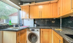 As you enter the property from the hallway you have access to all downstairs rooms, with concealed storage under the stairs, giving you extra space as you step inside. The spacious lounge and dining room layout allows for seamless flow between the rooms, creating a warm and inviting atmosphere throughout. Additionally, the well-appointed conservatory is the perfect spot to relax and unwind, offering views of the garden. The kitchen offers a host of wall and base units, with granite effect worktops and including appliances such as oven and hob.