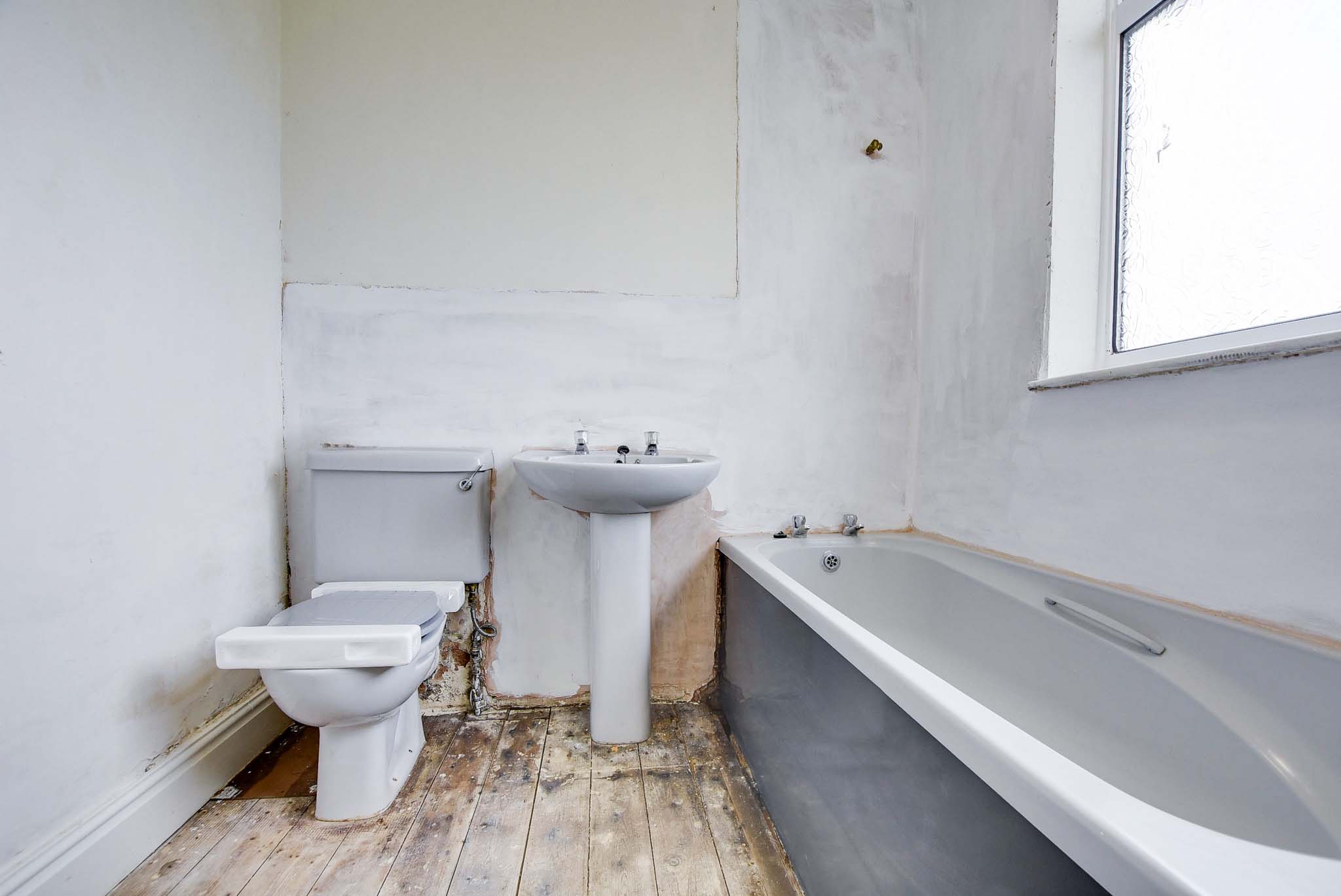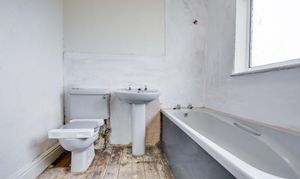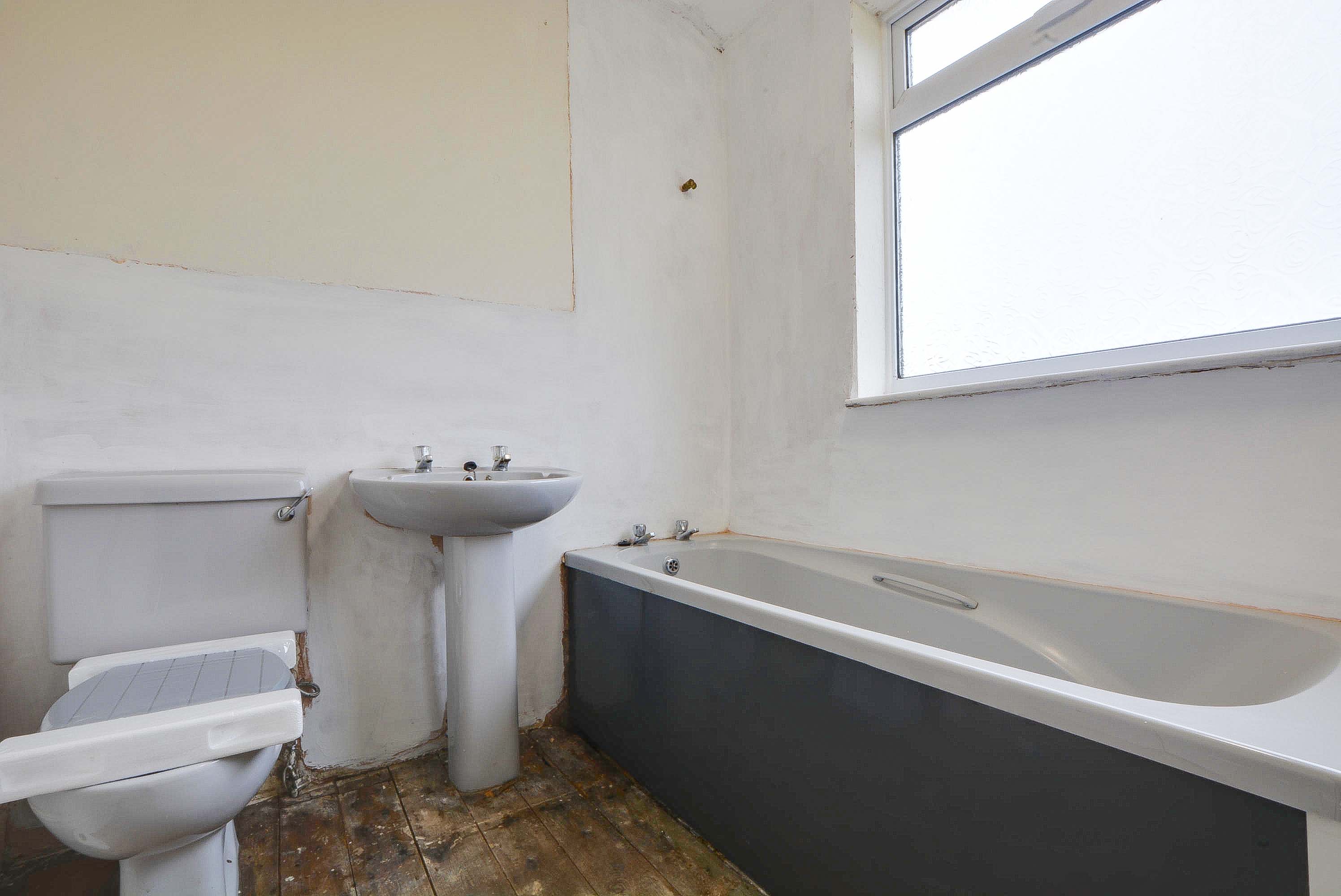 With double glazed window to the rear elevation, low-level WC, wash hand basin, bath, towel rail/radiator.