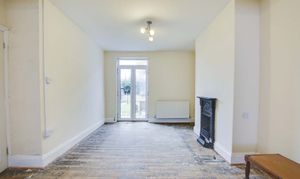 With double glazed square bay window to the front elevation, double glazed French doors to the rear elevation, two open fireplaces with surrounds, two radiators.