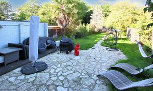 This stunning garden has a delightful, secluded feel and very pleasant leafy outlooks. There is a large patio with space for ample garden furniture, ideal for hosting large outdoor gatherings. The lawn stretches to the rear and is surrounded by flower and shrub borders. This garden needs to be seen to be fully appreciated.