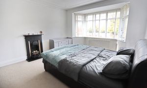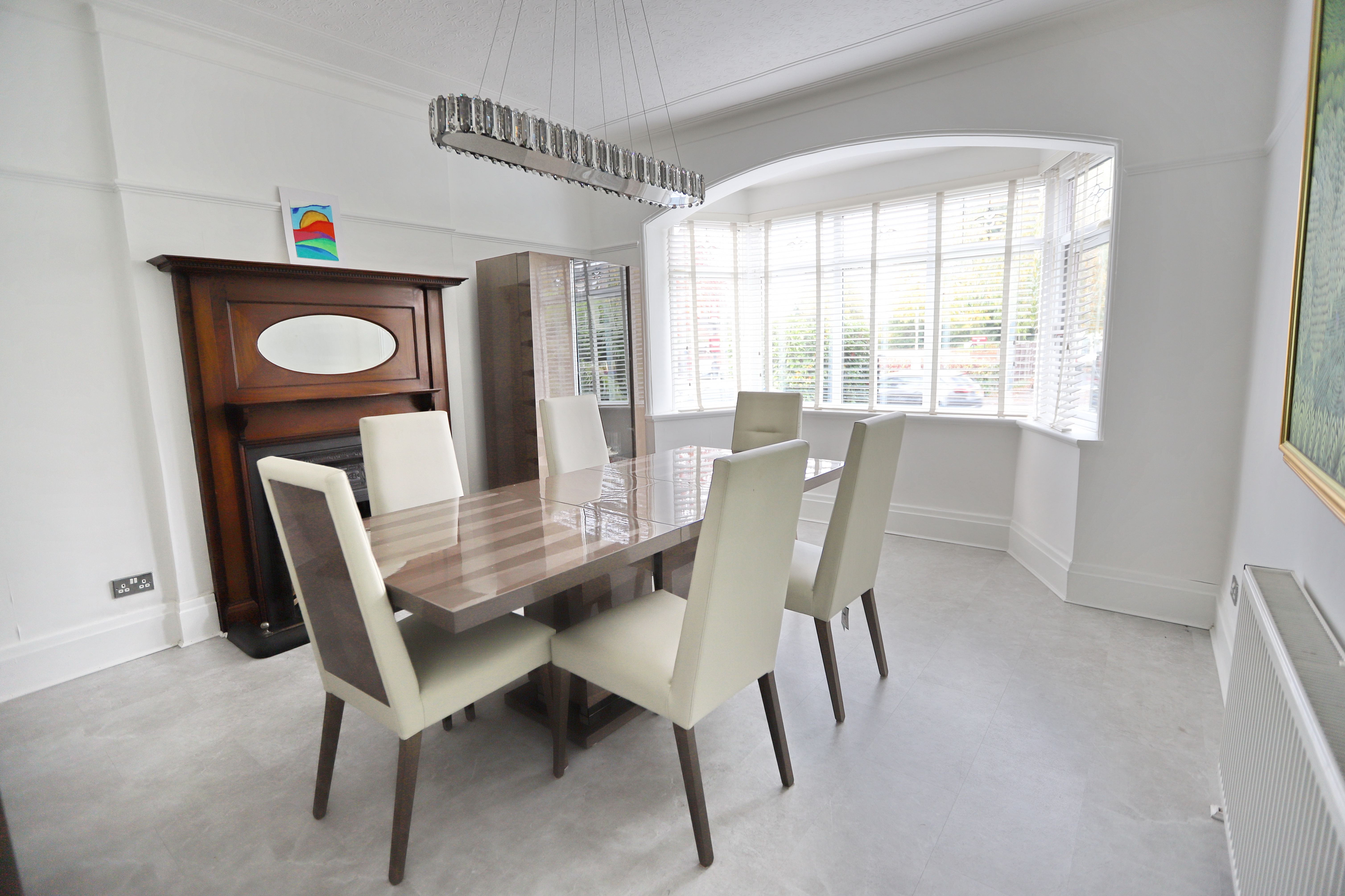 - Dining Room With Feature Fireplace And Bay Window