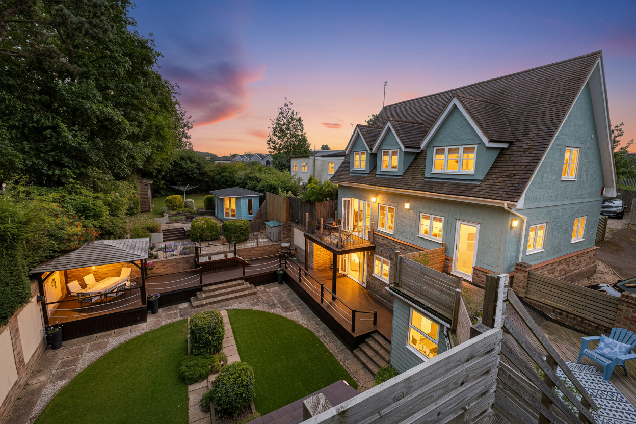 Situated at the end of a private lane, 5 Prospect Place offers a unique blend of seclusion, spaciousness, and style, all just a short walk from Saffron Walden's historic Market Square, esteemed schools, and various amenities. This remarkable four-bedroom family home includes a one-bedroom annexe, beautifully landscaped gardens, and over 3,500 square feet of versatile living space, conveniently located only 0.6 miles from the town centre. The home is meticulously presented across three levels and features a separate one-bedroom annexe, making it perfect for multi-generational living, guest accommodation, or potential rental income.