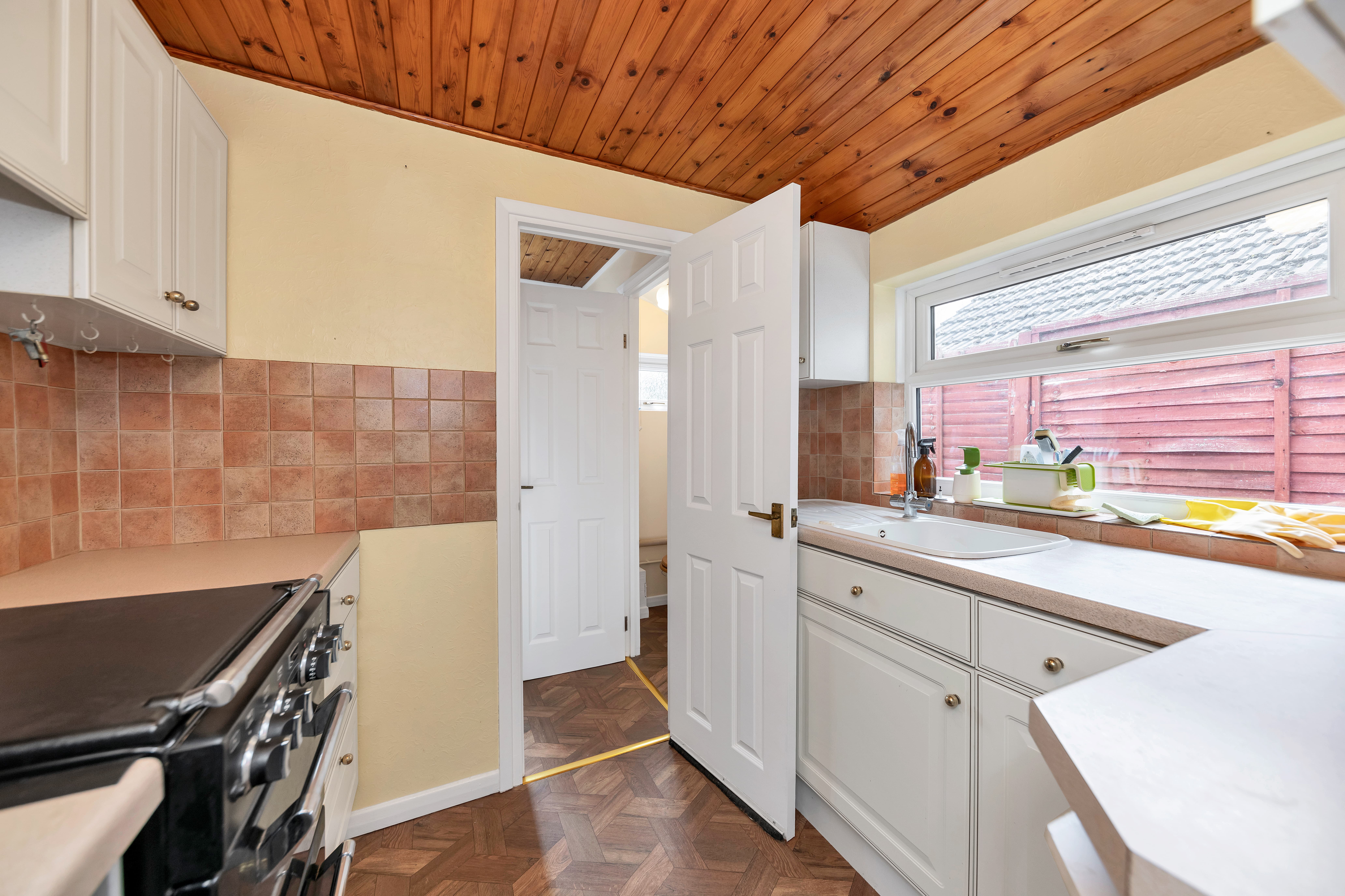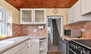 The kitchen is a very nice size, benefiting from a window to the side aspect, a range of base and wall units, laminate worktops, tiled splashbacks, wood effect flooring, pendant lighting, a cooker, an extractor fan, an under-counter fridge/freezer, and space for other small kitchen appliances. The utility room provides further storage, space for large laundry appliances, and access to a downstairs cloakroom WC.