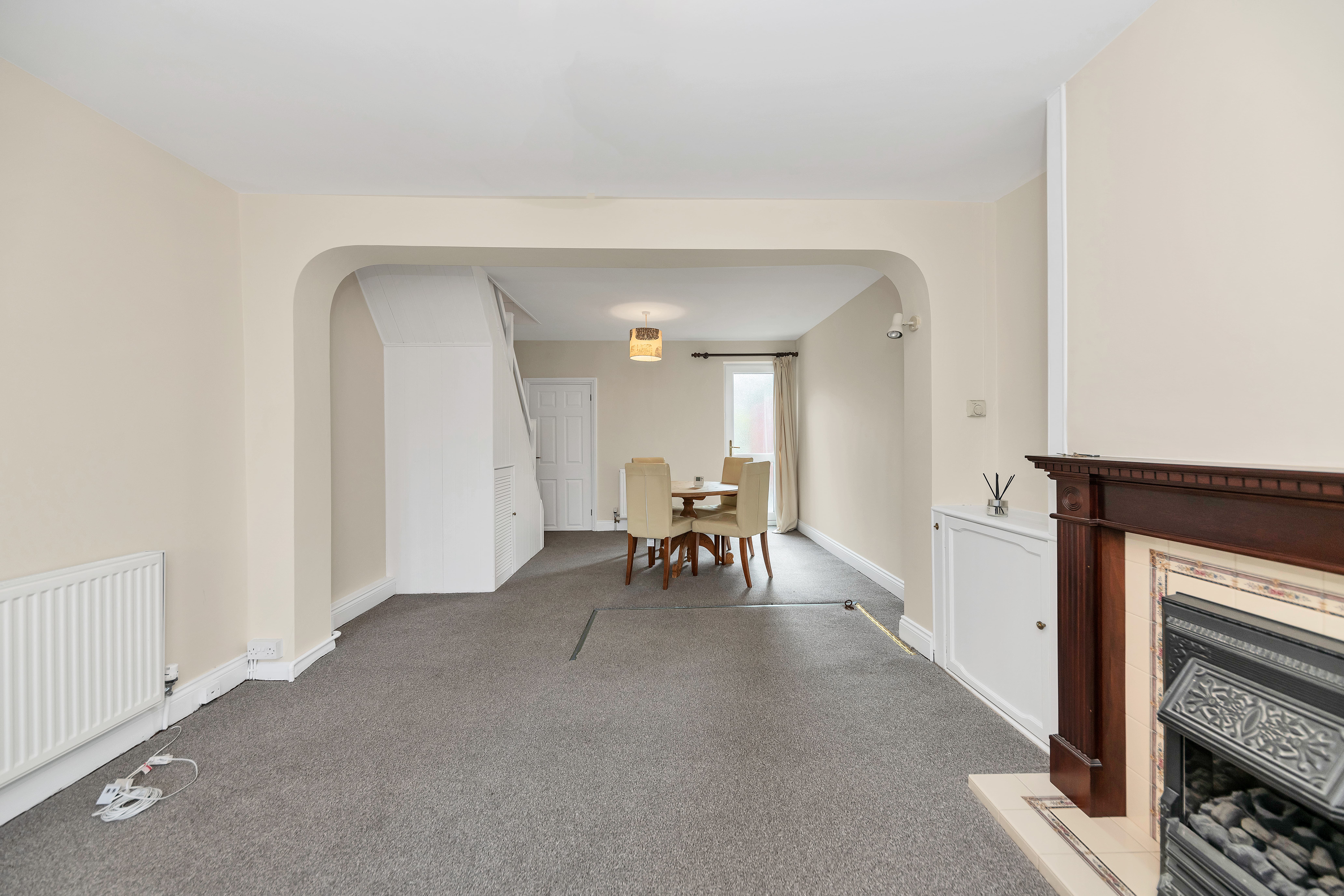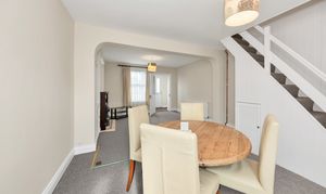 This Victorian terrace property enjoys an attractive and tidy frontage, with well-maintained hedgerows and close proximity to the train station, with direct links to both London Kings Cross and Cambridge. Upon stepping inside, the entrance hallway is bright and welcoming, with carpet, pendant lighting and doors through to the downstairs living space.