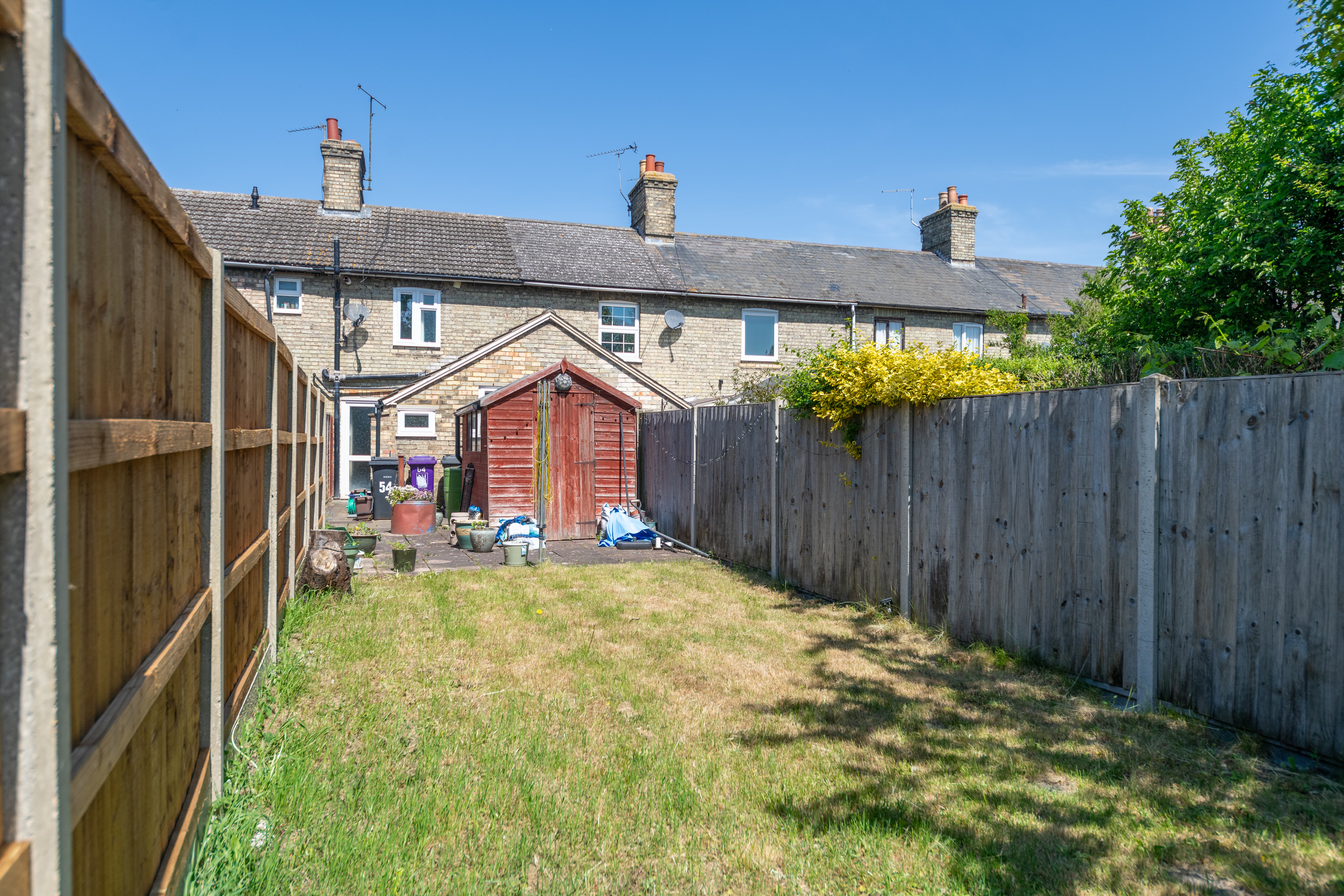 Outside, to the rear, the garden is an excellent size, offering a lovely space to sit and relax in the sunshine. It is laid mainly to lawn, with a paved patio by the house and another to the bottom of the garden, providing ample space for garden furniture, enjoying meals al fresco and entertaining guests. There is space for potted plants, access to a large shed, and plenty of scope for future owners to put their own stamp on things.