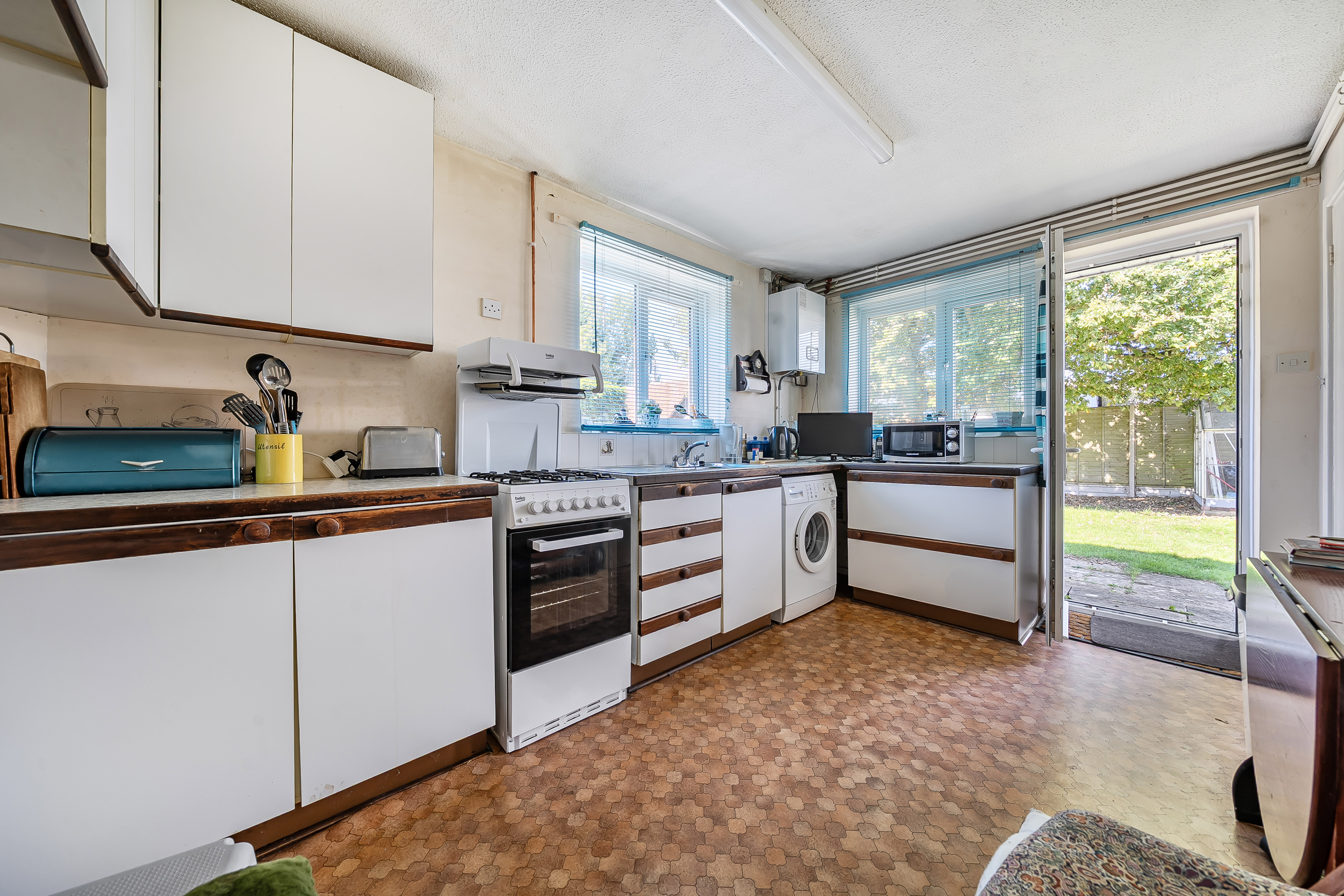 A detached two-bedroom bungalow, set at the end of a pedestrian walkway within a quiet cul-de-sac, offered for sale with the added benefit of a garage located in a nearby compound.
