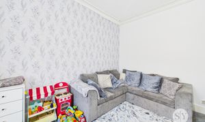 Carpet flooring, ceiling coving, double glazed uPVC window, panel radiator.