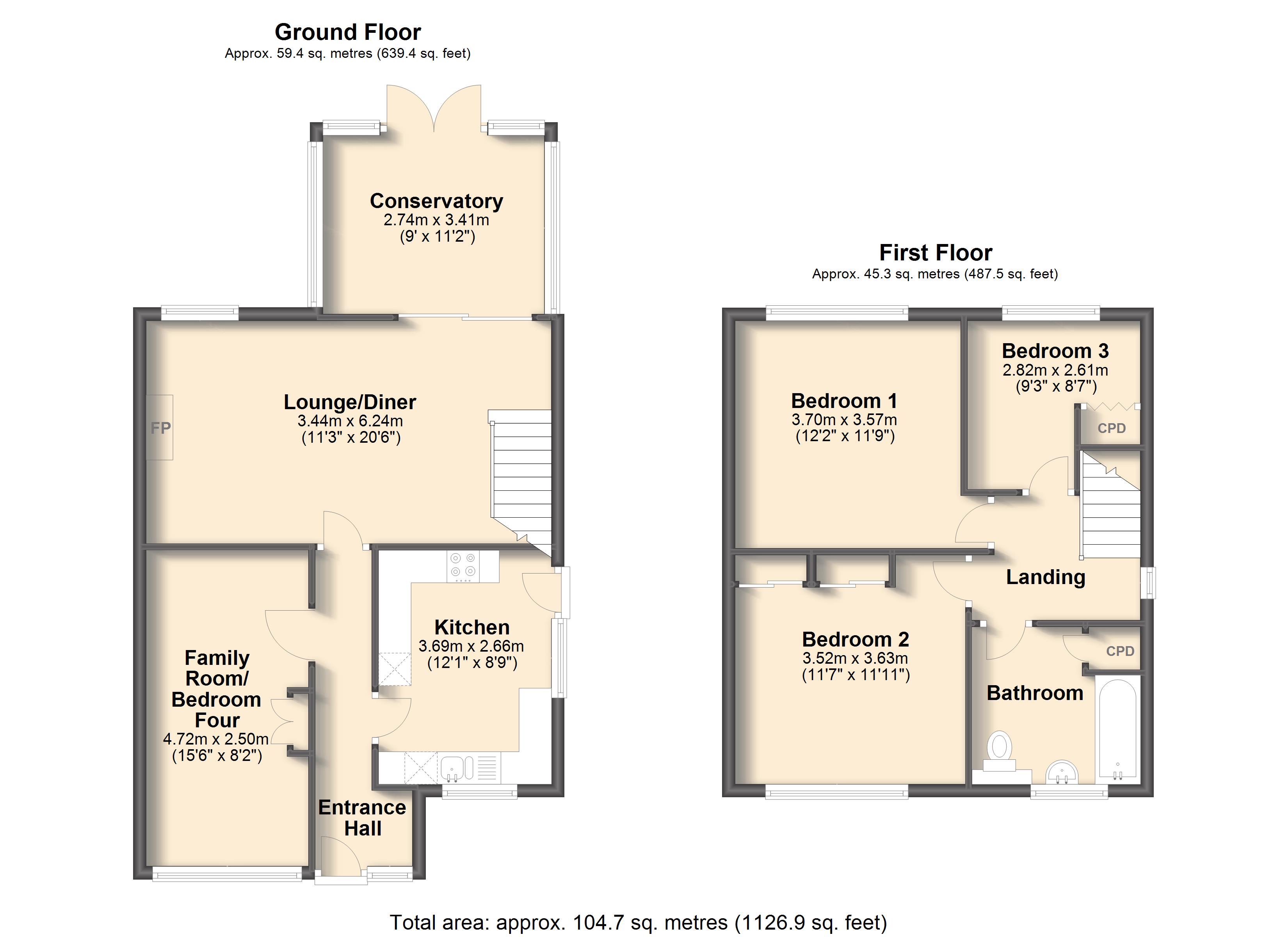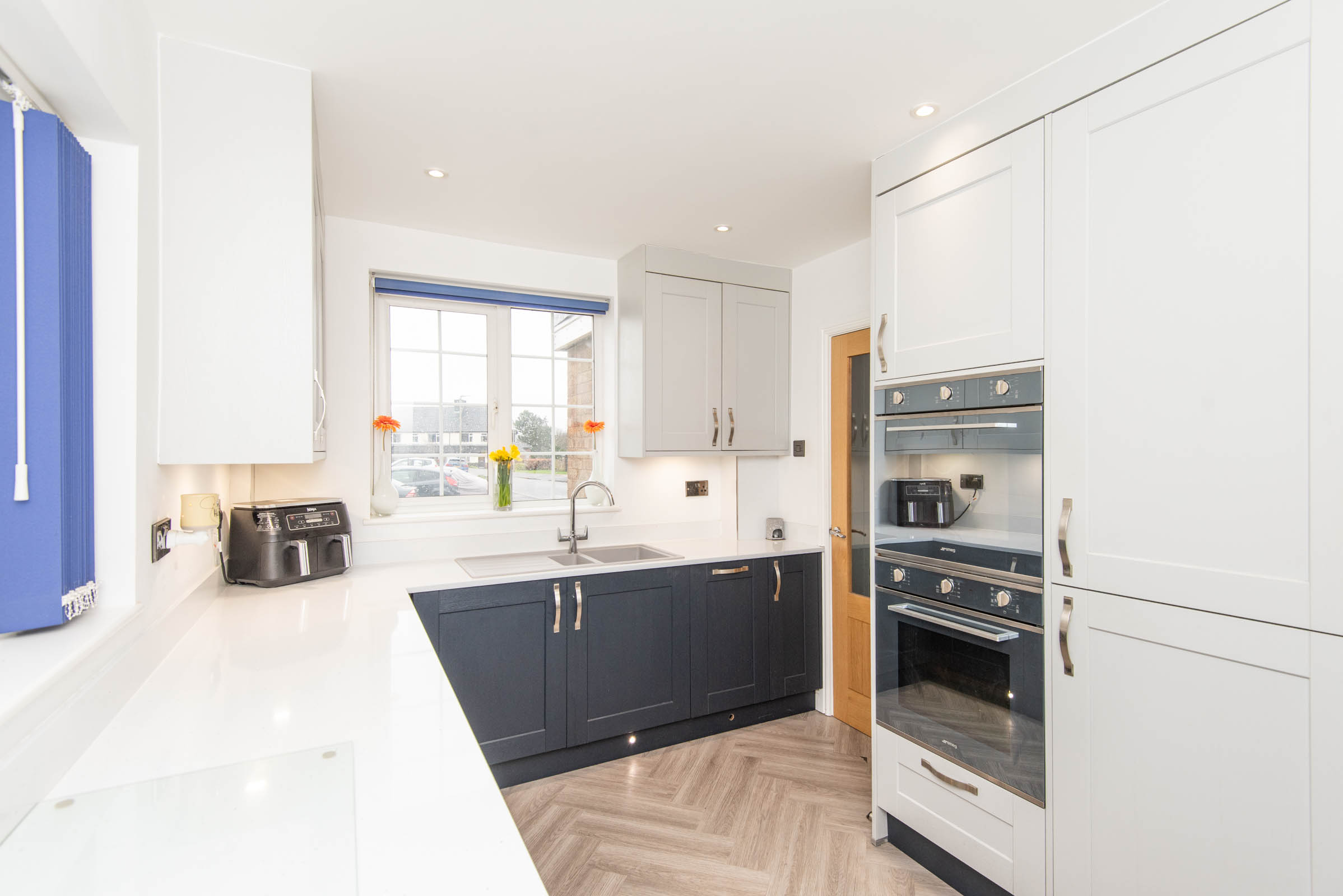 Upon entering the property, you’re welcomed by a spacious hallway leading to a modern fitted kitchen, complete with a range of integrated appliances. The ground floor also offers a generous open plan lounge, which seamlessly flows into the conservatory through elegant patio doors, providing an abundance of natural light and a versatile space for both relaxing and entertaining. The flexible ground floor room (currently used as bedroom four) offers a practical solution for guests, a home office, or playroom.