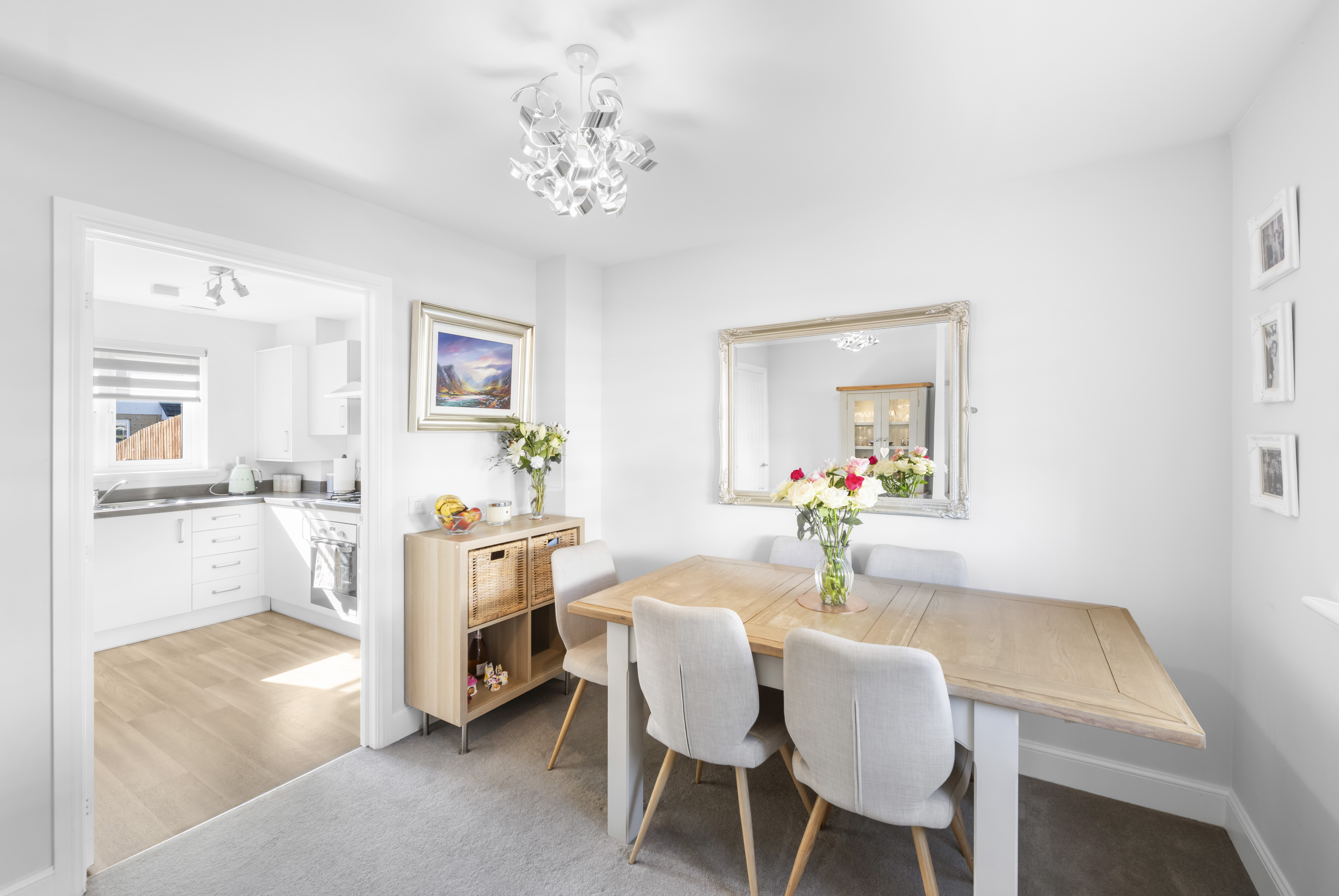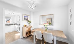 Ideal for entertaining or family meals. Front facing window with roller blind. Doors to hall and cupboard housing electric switchgear. Radiator.