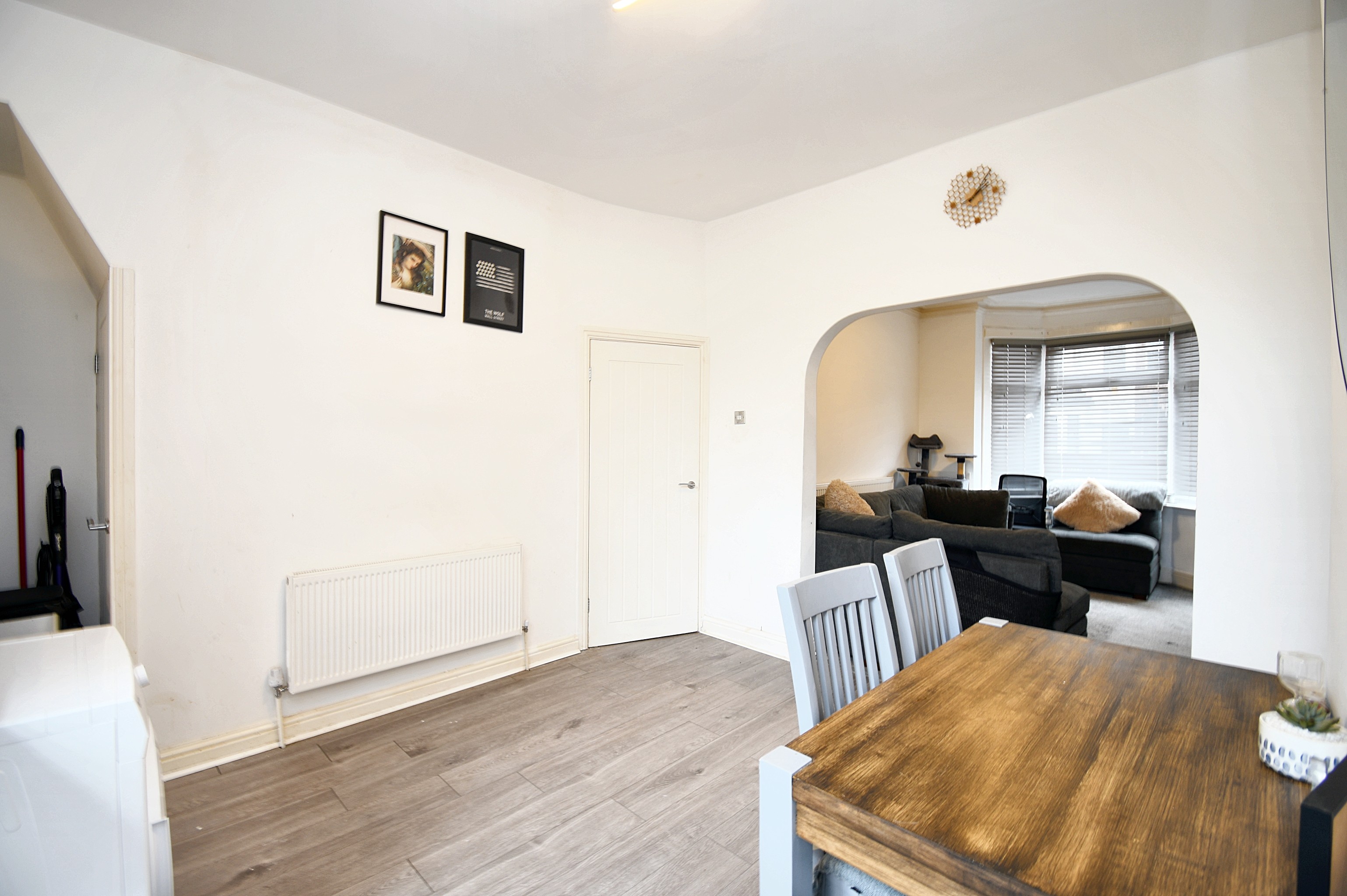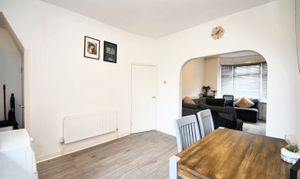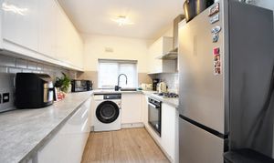 Featuring ceiling wall point, double glazed window, wall and base units, storage under the stairs. Complete with composite sink, gas hob, stainless steel extractor. Space for washer, fridge freezer. Fitted with laminate flooring.