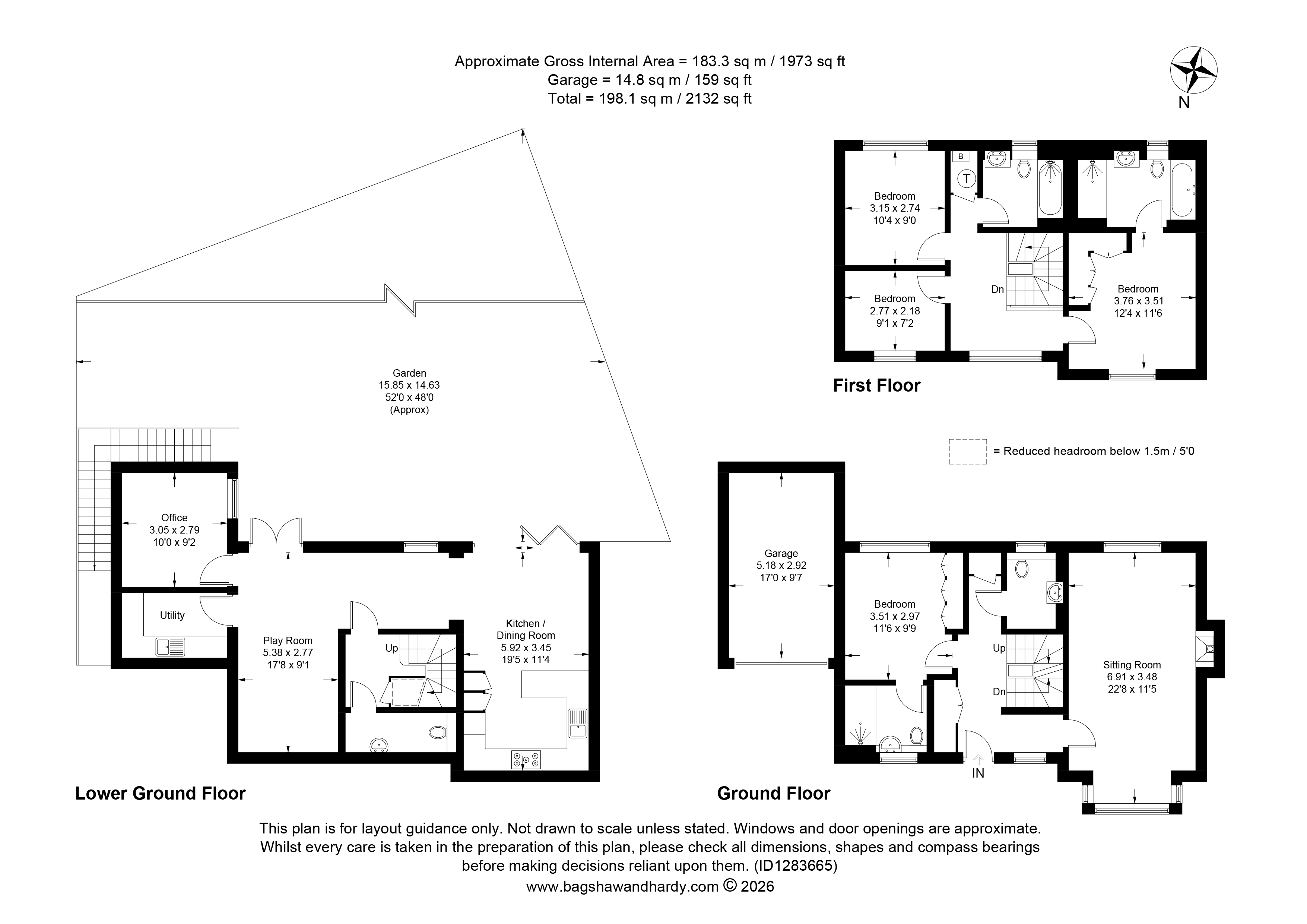 Approximate Gross Internal Area: 1973 Sq Ft / 183.3 Sq M