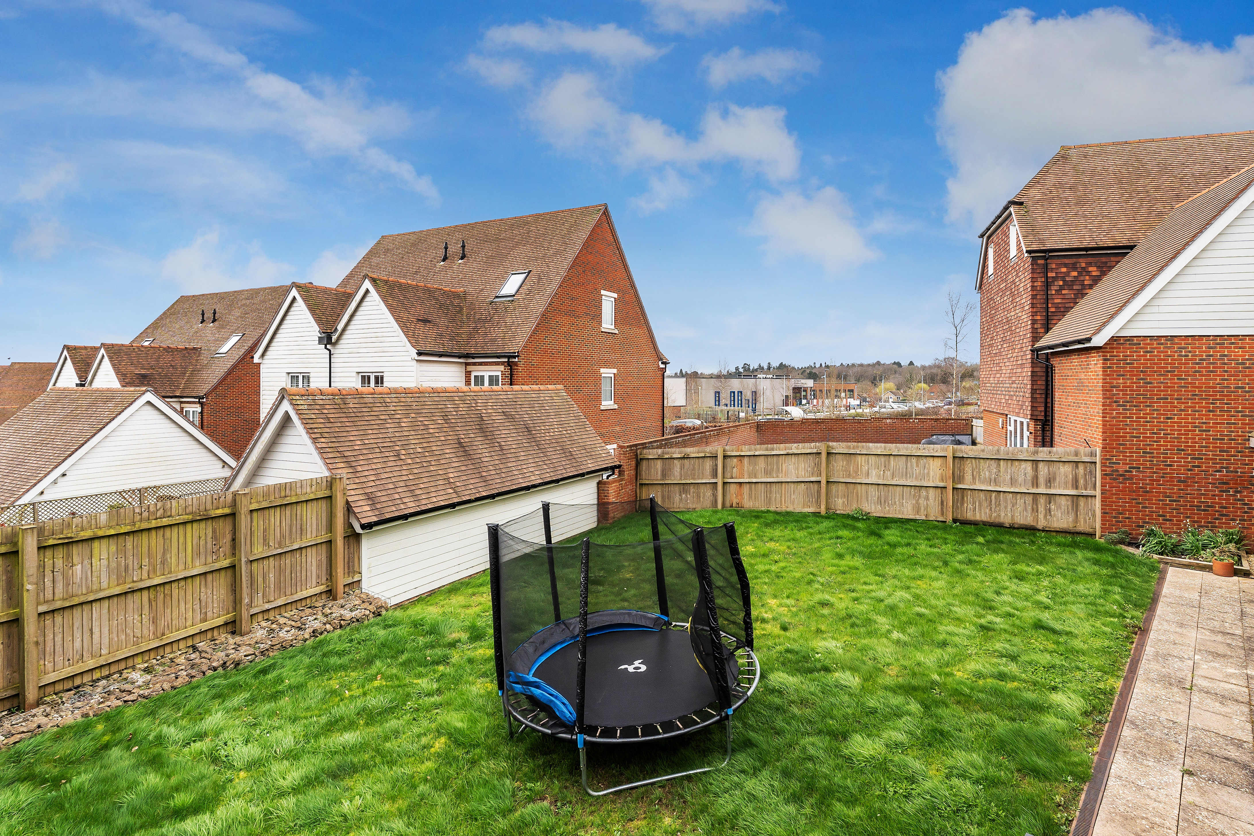 Outside, the property enjoys a south facing rear garden providing a pleasant and private outdoor space. To the front there is a driveway providing off road parking together with a garage. The front garden is maintained as part of the estate charge. Public EV charge points are available throughout the development.