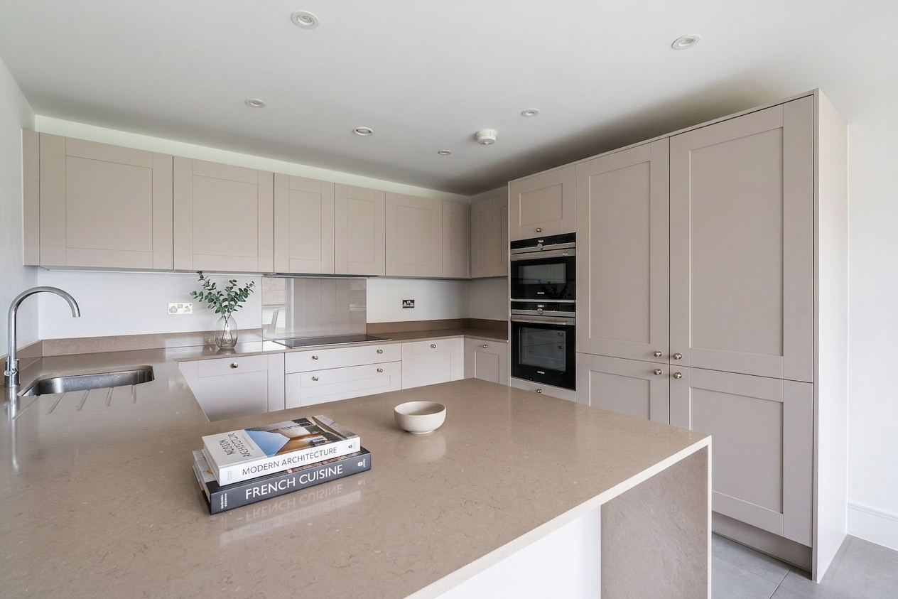 The first floor hosts three further bedrooms. The main bedroom benefits from fitted wardrobes and a well appointed en-suite bath and shower room. Bedrooms two and three are served by a stylish family bathroom, all finished with modern fittings and quality tiling.
