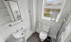 The bedrooms are generously sized, providing a peaceful retreat to unwind. The master bedroom is a large double room and includes fitted bedroom furniture and carpeted flooring, benefiting from two windows flooding the room with natural light. There is an en suite bathroom with a walk in shower, low level flush WC and wash hand basin. The second large double room includes carpeted flooring and plenty of space for bedroom furniture. This room could equally been used as home office, guest room or further sitting room. There is a main bathroom which comprises of a white three piece bathroom suite, panelled bath with shower, WC and wash hand basin and white tiled walls.