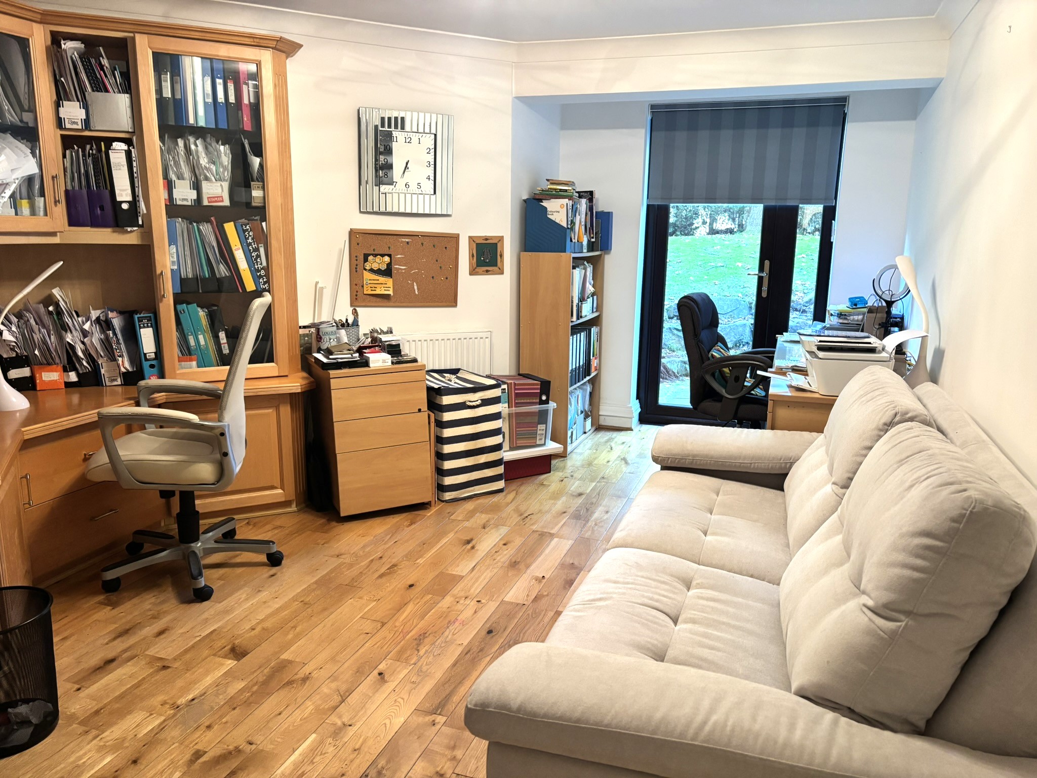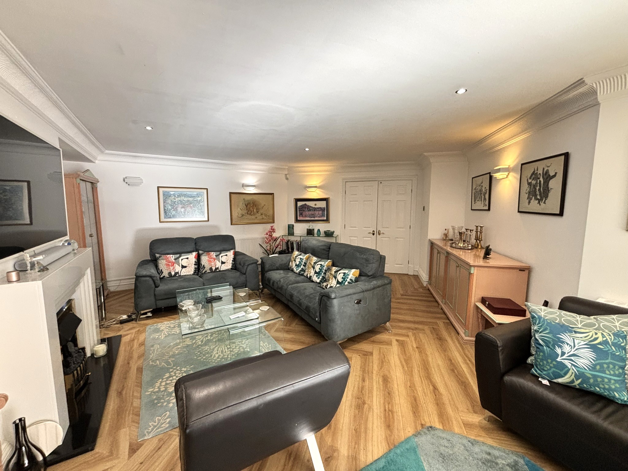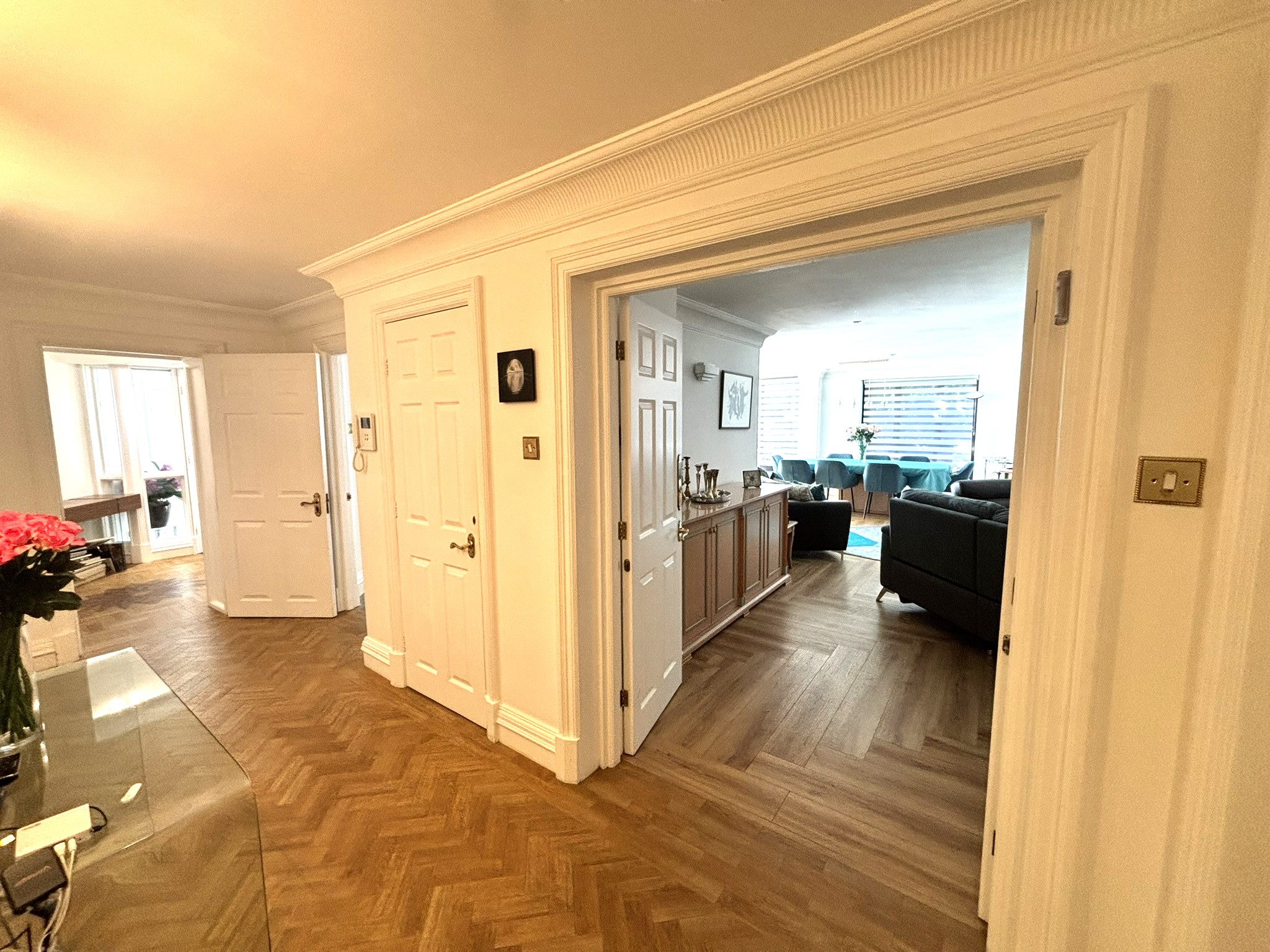 Located on the ground floor with private entrance through the extensive gardens, the apartment opens to a welcoming entrance hall. The spacious kitchen has amazing features such as automated cupboards, dual sinks, Quooker tap, American style fridge freezer and double ovens. A central island with seating area makes a great space to prepare family meals and for day to day living.