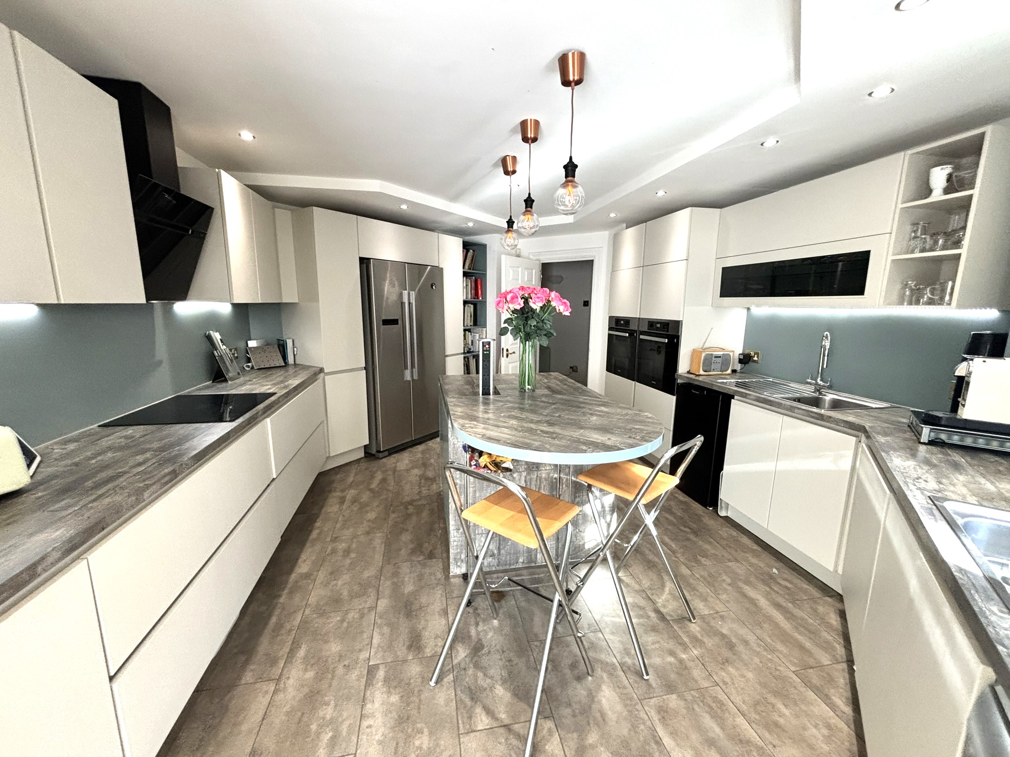 The lounge and dining room is a vast space with large floor to ceiling windows with a sliding door opening on to the garden area. The lounge has space for large furniture, and has electric blinds installed. The dining area has large windows and room for a substantial table. A truly fantastic space.