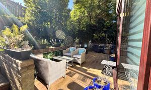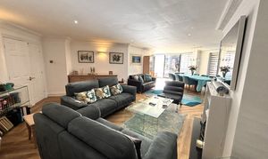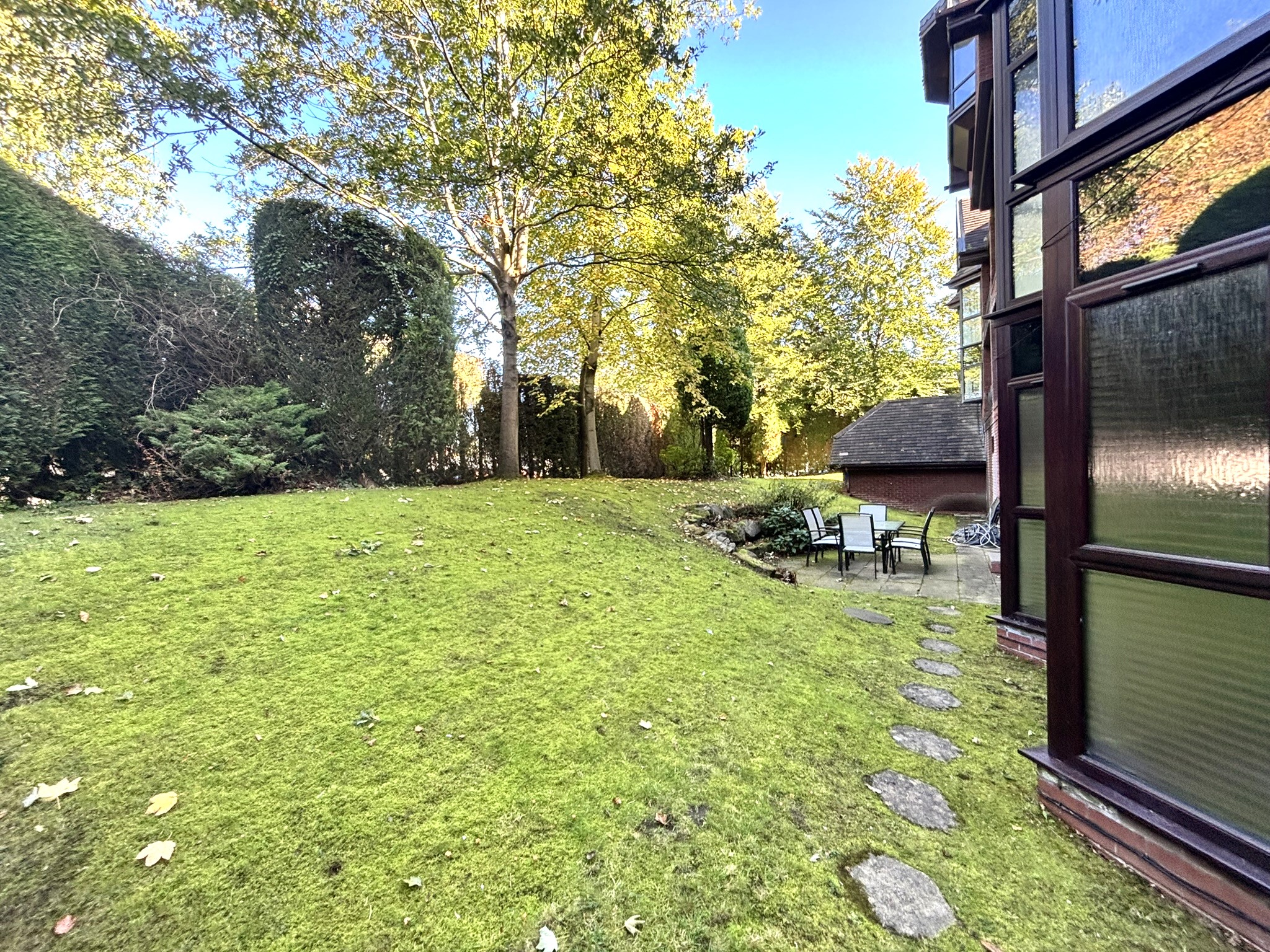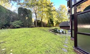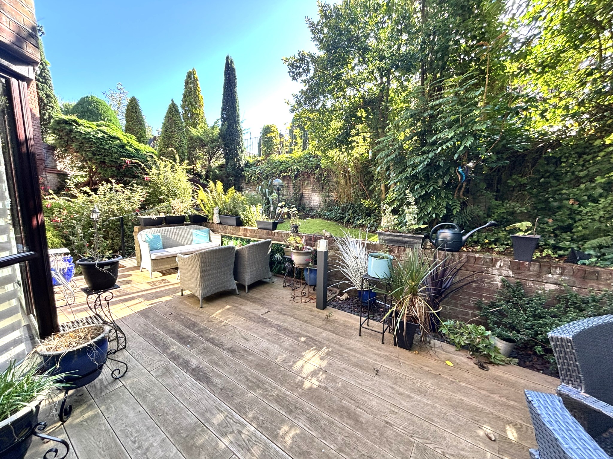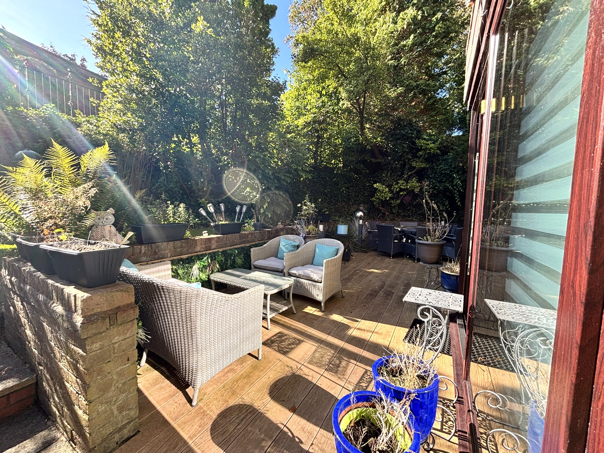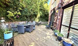 Extensive gardens accessed from the dining area via sliding door to the terrace decked area, with plenty of room for garden furniture, and seating areas. The garden wraps around to three sides of the apartment with a grass area to the side and rear, with additional seating area off the second bedroom. Gardens are maintained by the management company.