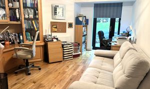 A large double bedroom/guest room also used as a home office. With access door to the garden and electric blinds.
