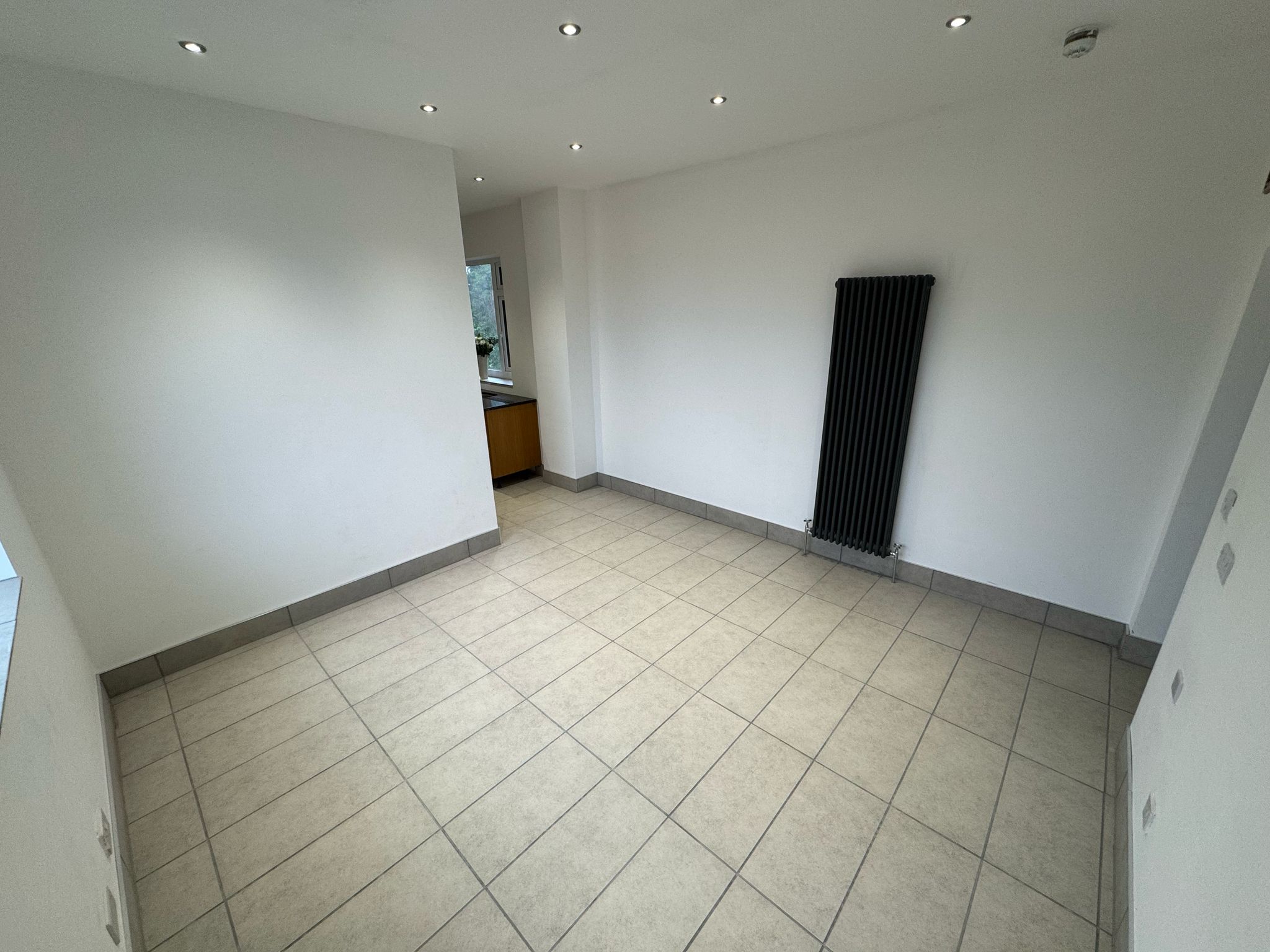 This room awaits your dream kitchen! While you plan your perfect space, a temporary kitchen in the utility area provides functionality. The room features tiled floors, plumbing, and drainage ready for your new design. A large rear aspect UPVC window floods the room with natural light, and a charming box buzzer adds a touch of vintage character.