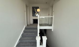 Bathed in natural light from a striking two-story stairwell window, this spacious landing offers access to three en-suite bedrooms on this floor.
