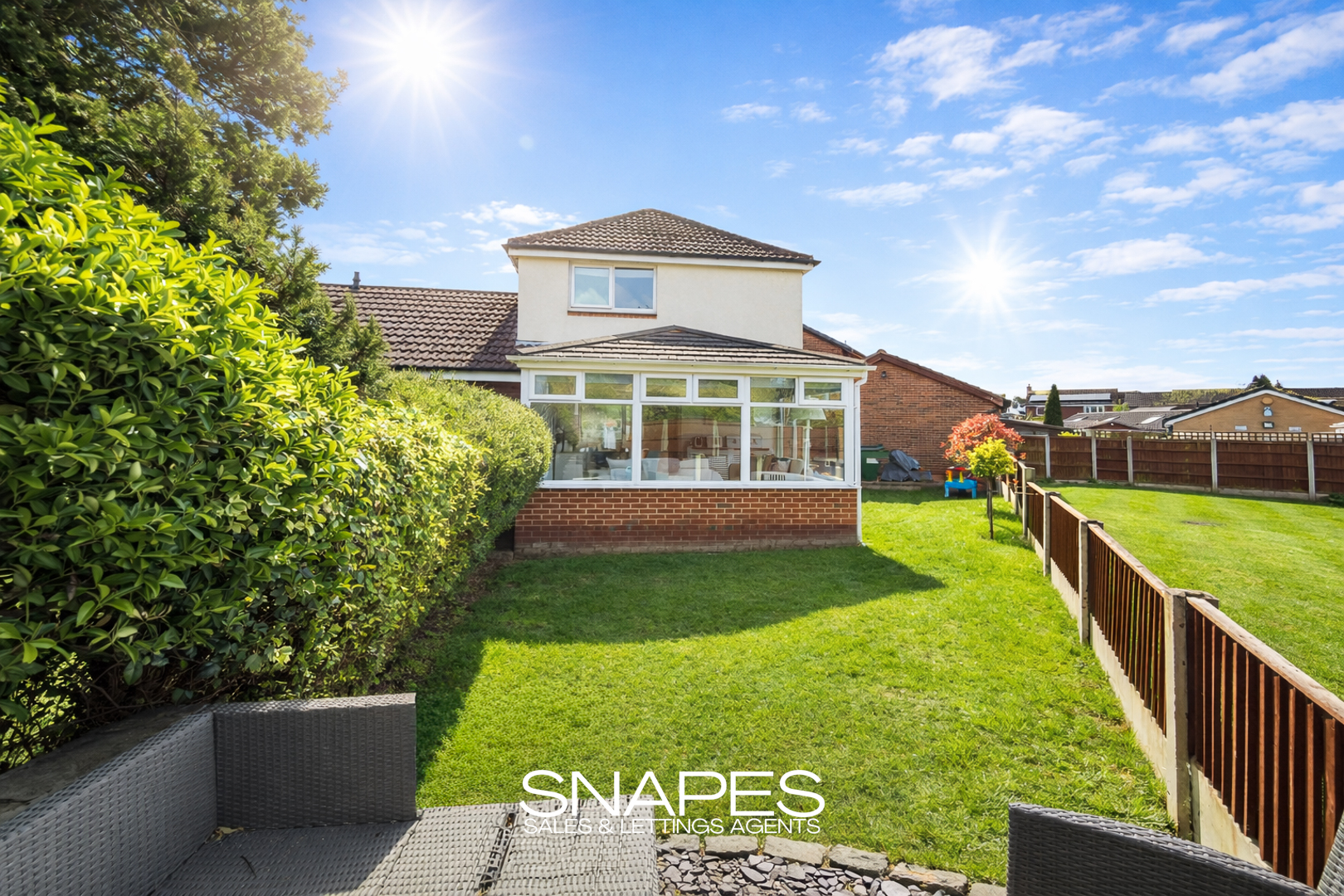 To the rear, the conservatory provides additional reception space with views over the garden, making it ideal for relaxing or entertaining.