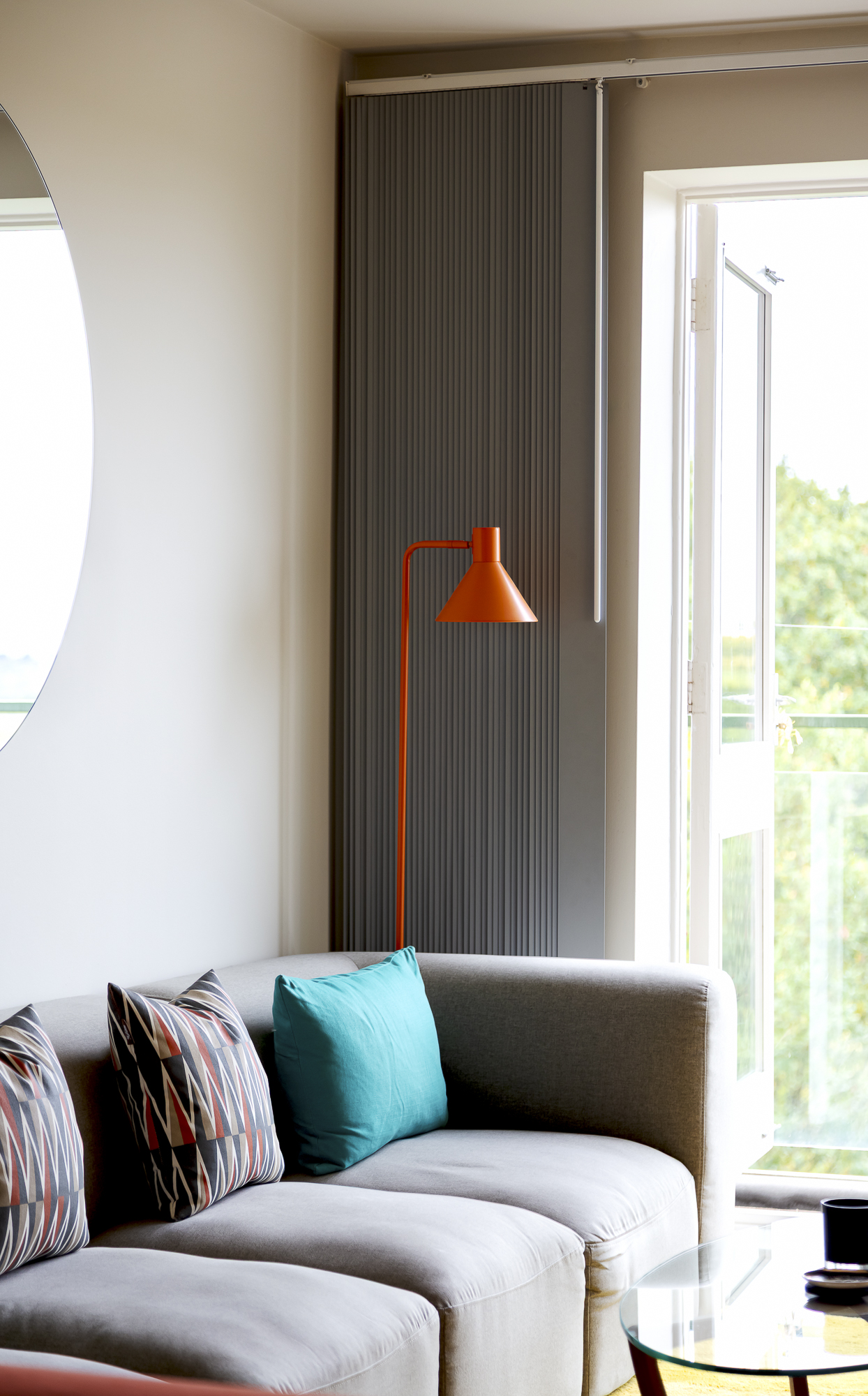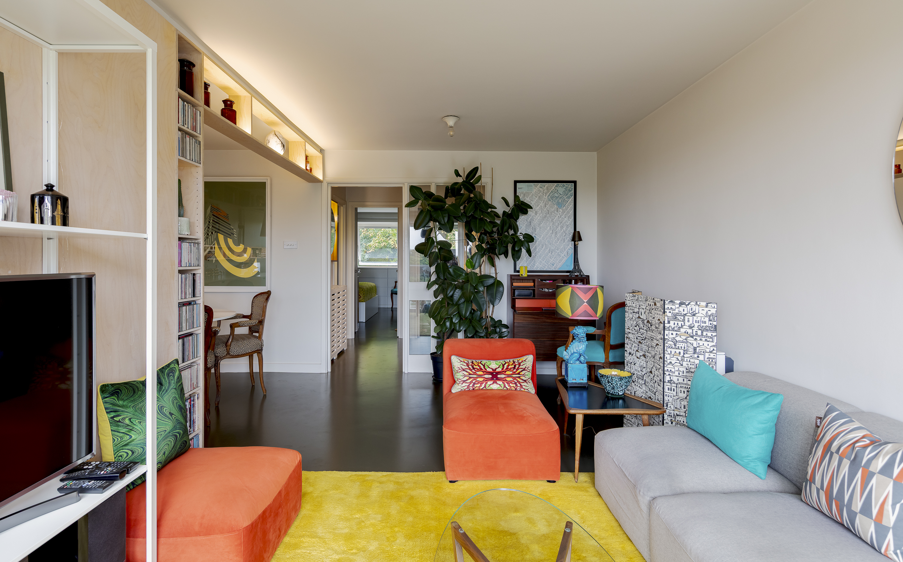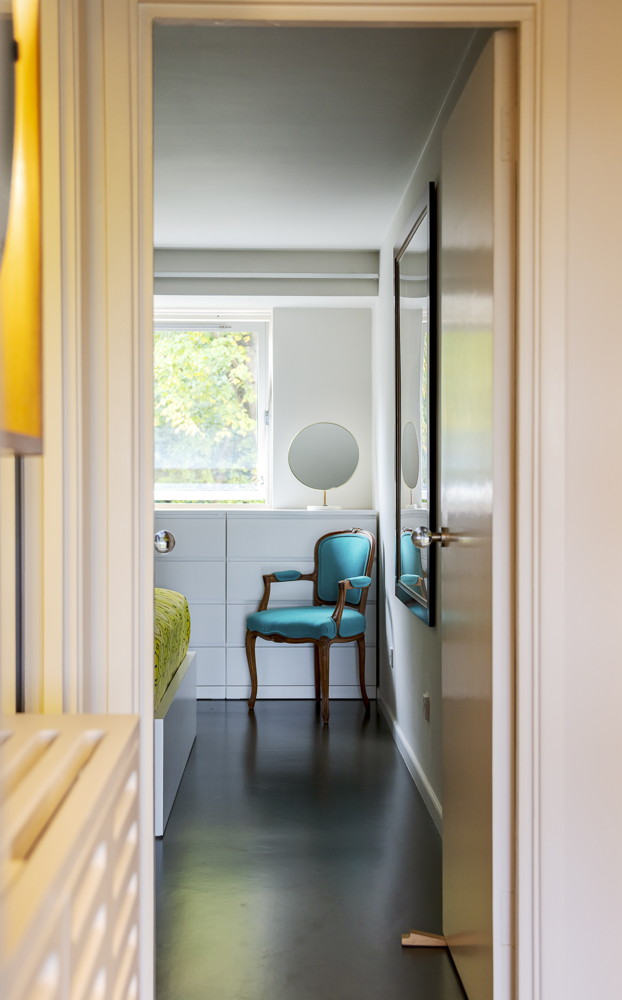 Rubber flooring throughout the living spaces, both practical and beautifully minimal