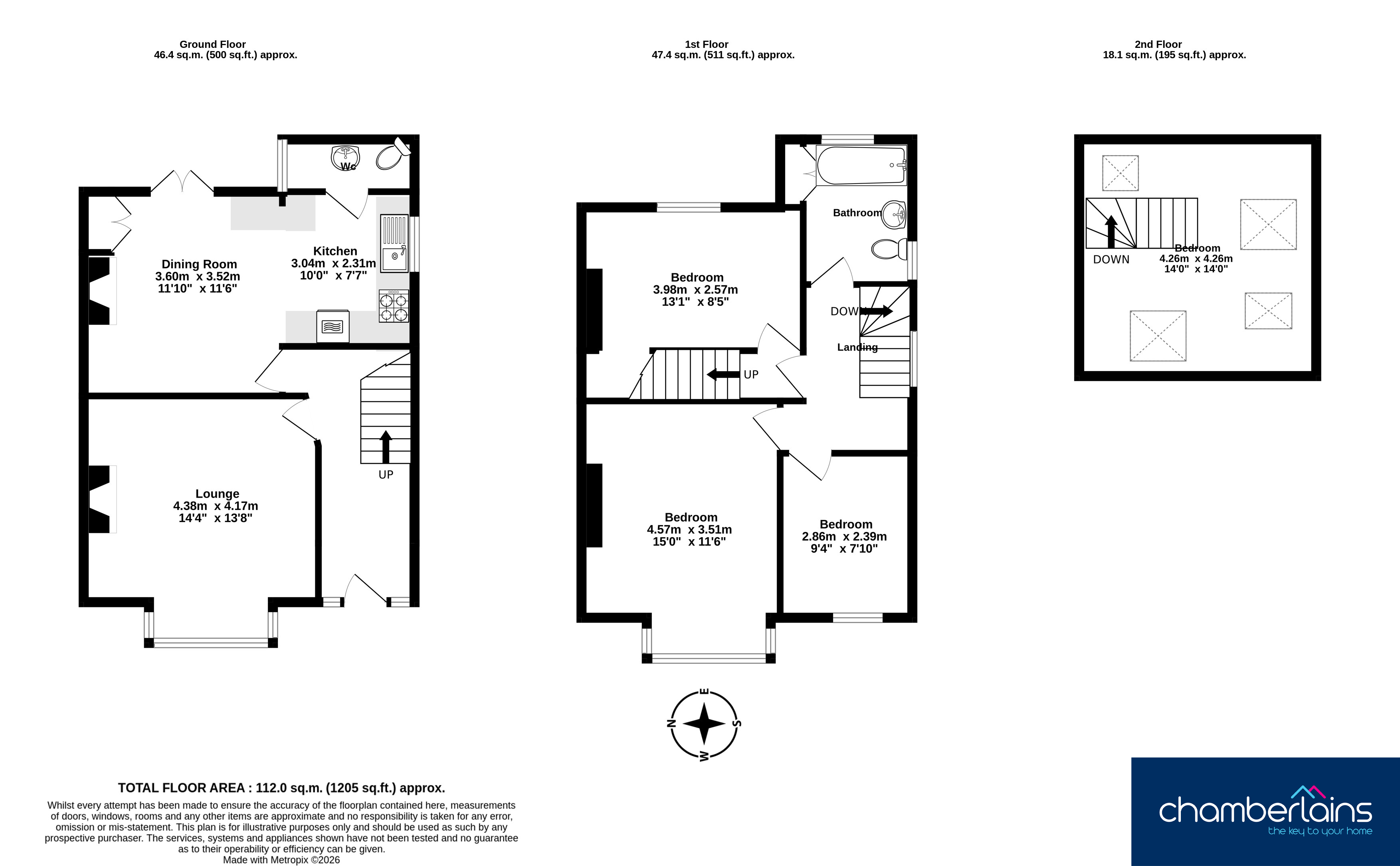MEASUREMENTS: Living Room 14’3” x 13’7” (4.34m x 4.14m),Kitchen/Dining Room 19’9” x 11’9” (6.01×3.58m), Bedroom 13’0” x 13’0” (3.95m x 3.95m), 14’11” x 11’5” (4.55m x 3.49m), Bedroom 9’5” x 7’9” (2.87m x 2.36m), Bedroom 15’1” x 14’5” (4.60m x 4.40m)