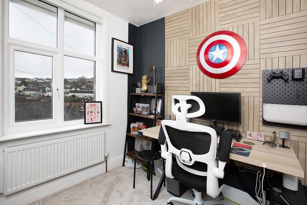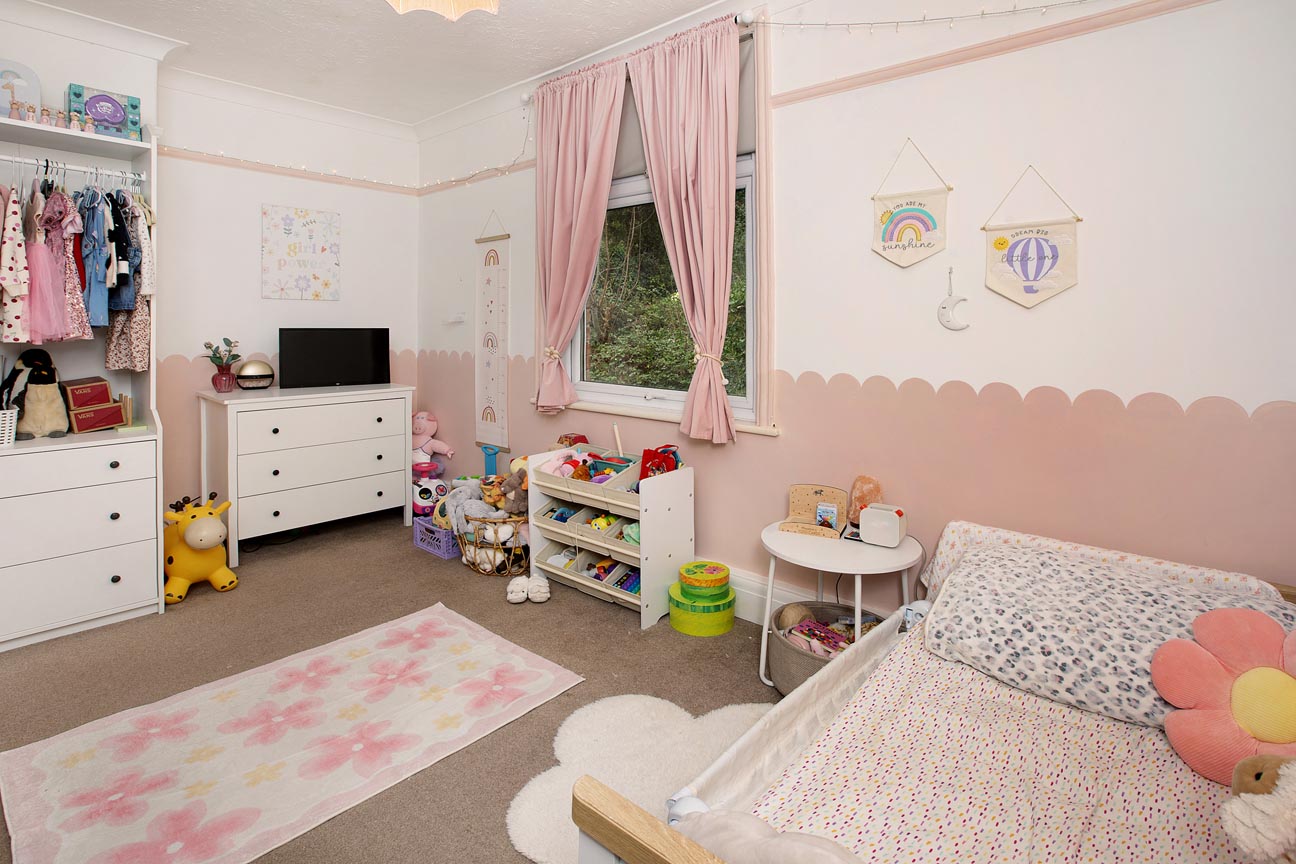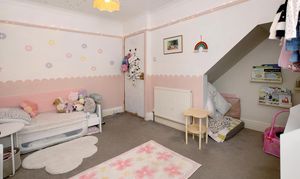 Ascending the stairs to the first floor, the landing leads to a luxury family bathroom and three bedrooms, with further stairs then leading up to the fourth bedroom. The bedrooms are all good sizes. The master bedroom has a large bay window affording views out towards Shaldon and allowing plenty of light. The modern family bathroom has been fitted to a high standard and comprises a rain fall shower over the bath, obscured window to the rear, WC and wash hand basin with storage cupboards below.