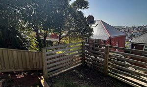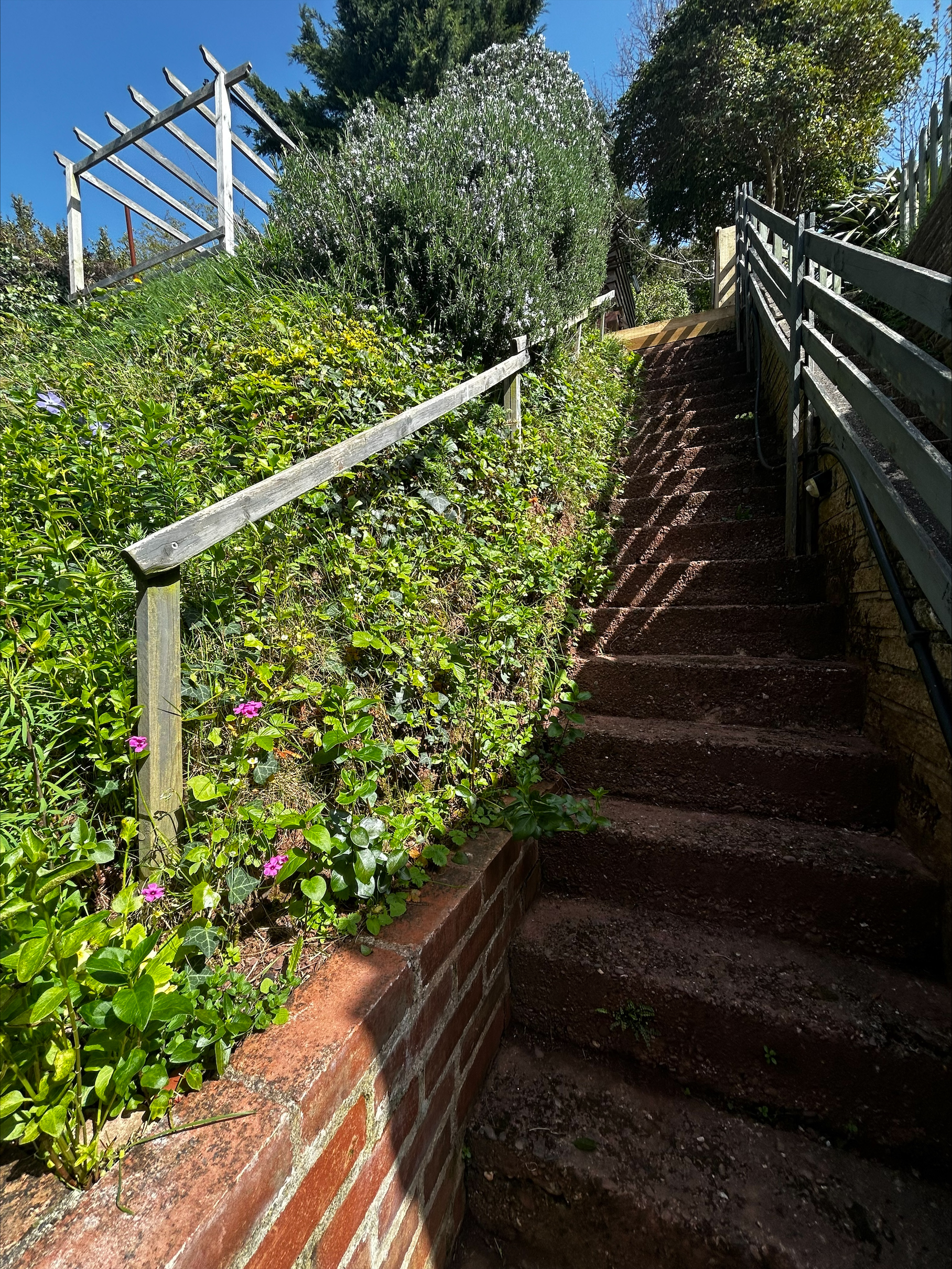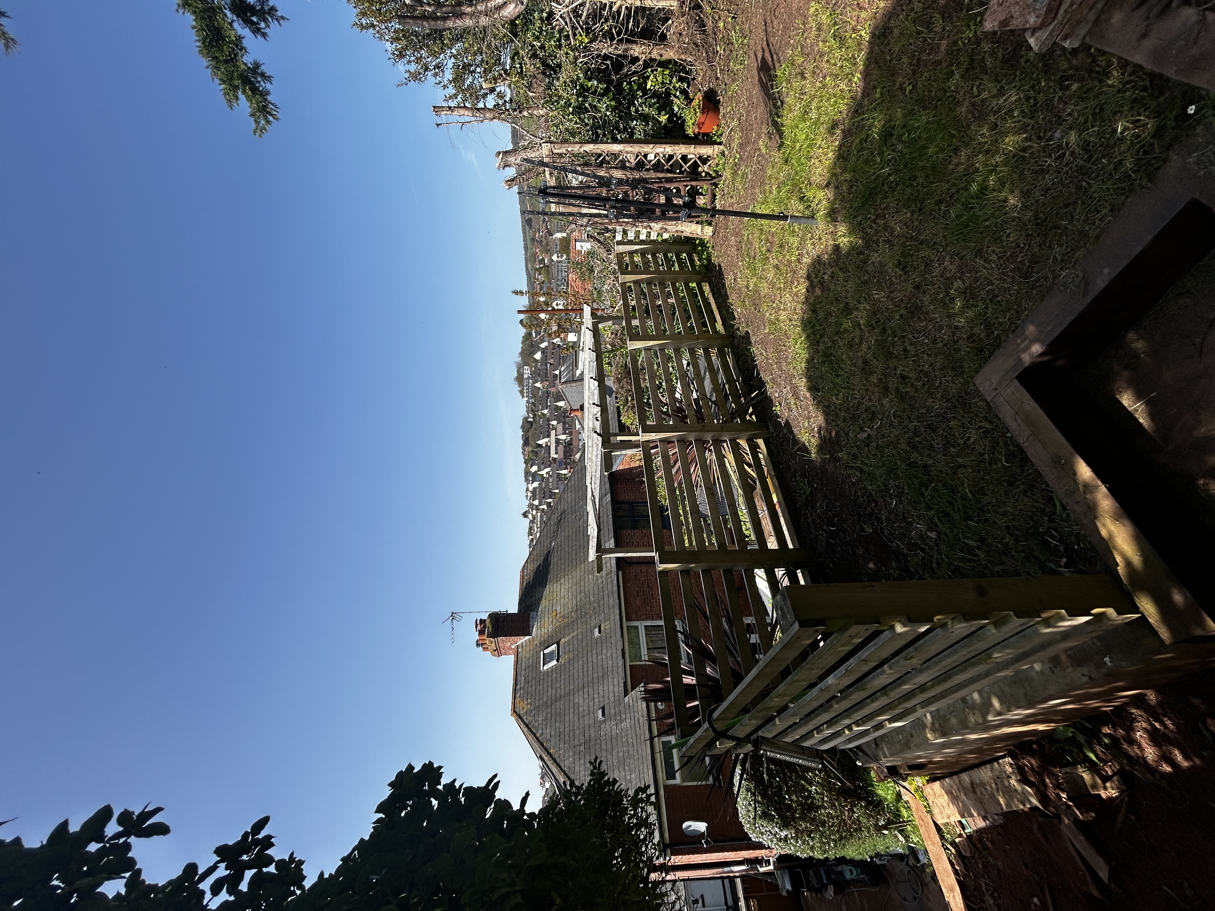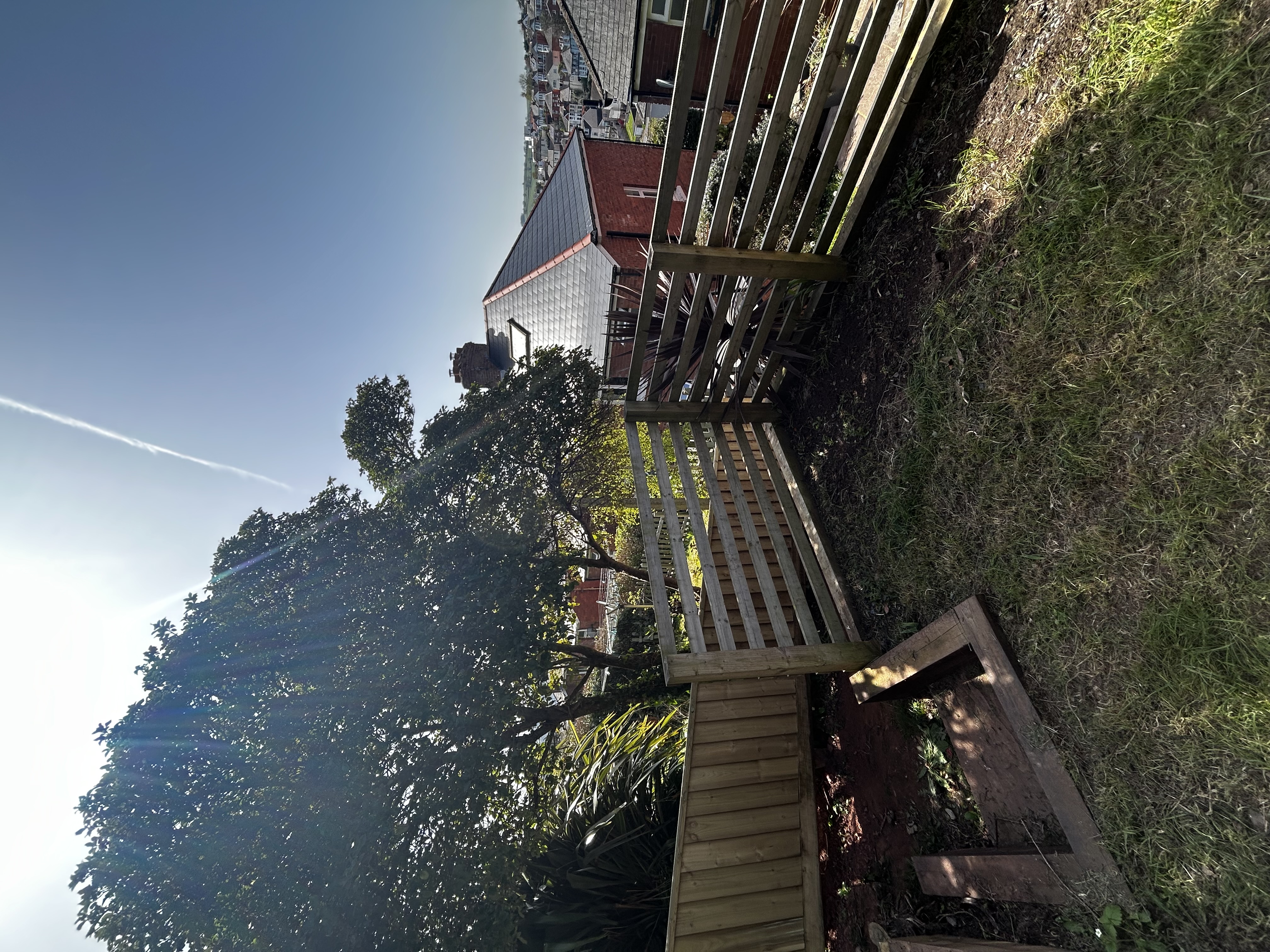 Good sized terraced garden to the rear with steps up to decked & lawned areas and a courtyard garden at the lower area.