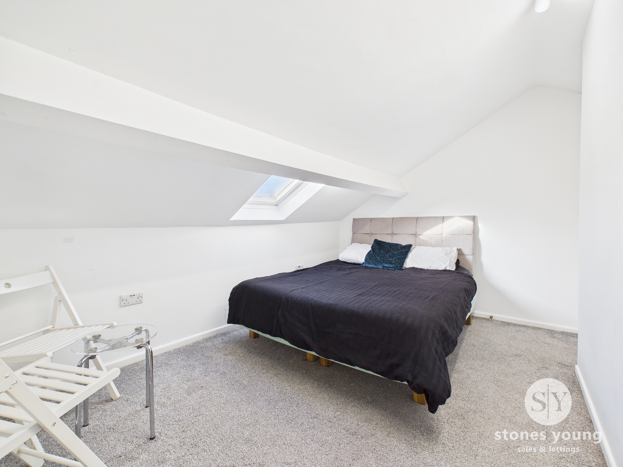 Head upstairs and you’ll find an ample landing leading to each of the bedrooms. Both bedrooms have previously housed double beds and both have the benefit of fitted wardrobes, maximising the space on offer. The bathroom is also found on the first floor where modern upgrades have given the space a real lift. This home has the unique benefit of an attic conversion and with the intelligent design, ensures minimal compromise and a huge benefit with a space that currently boasts a king sized bed, yet offers the versatility for a home office or games room.