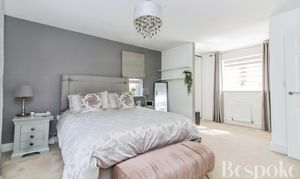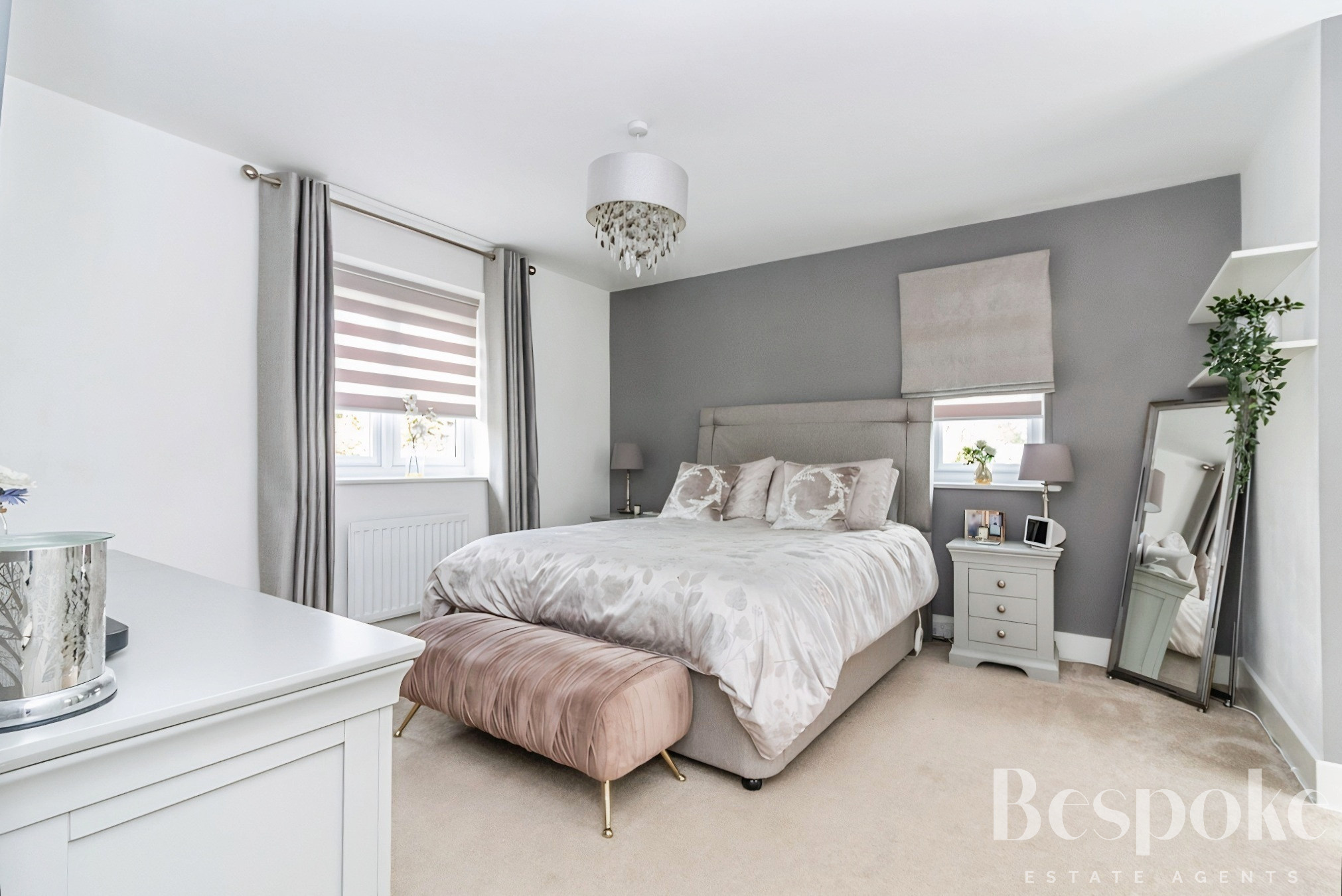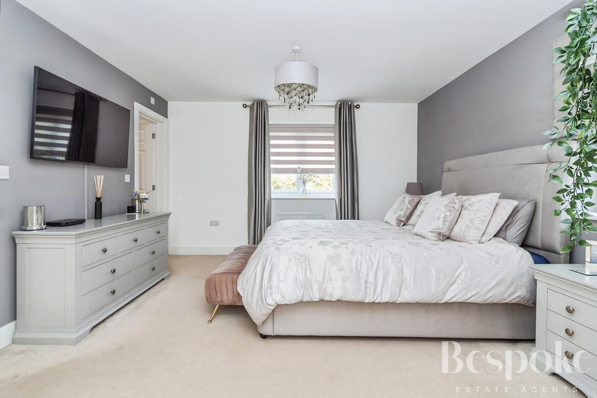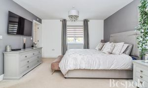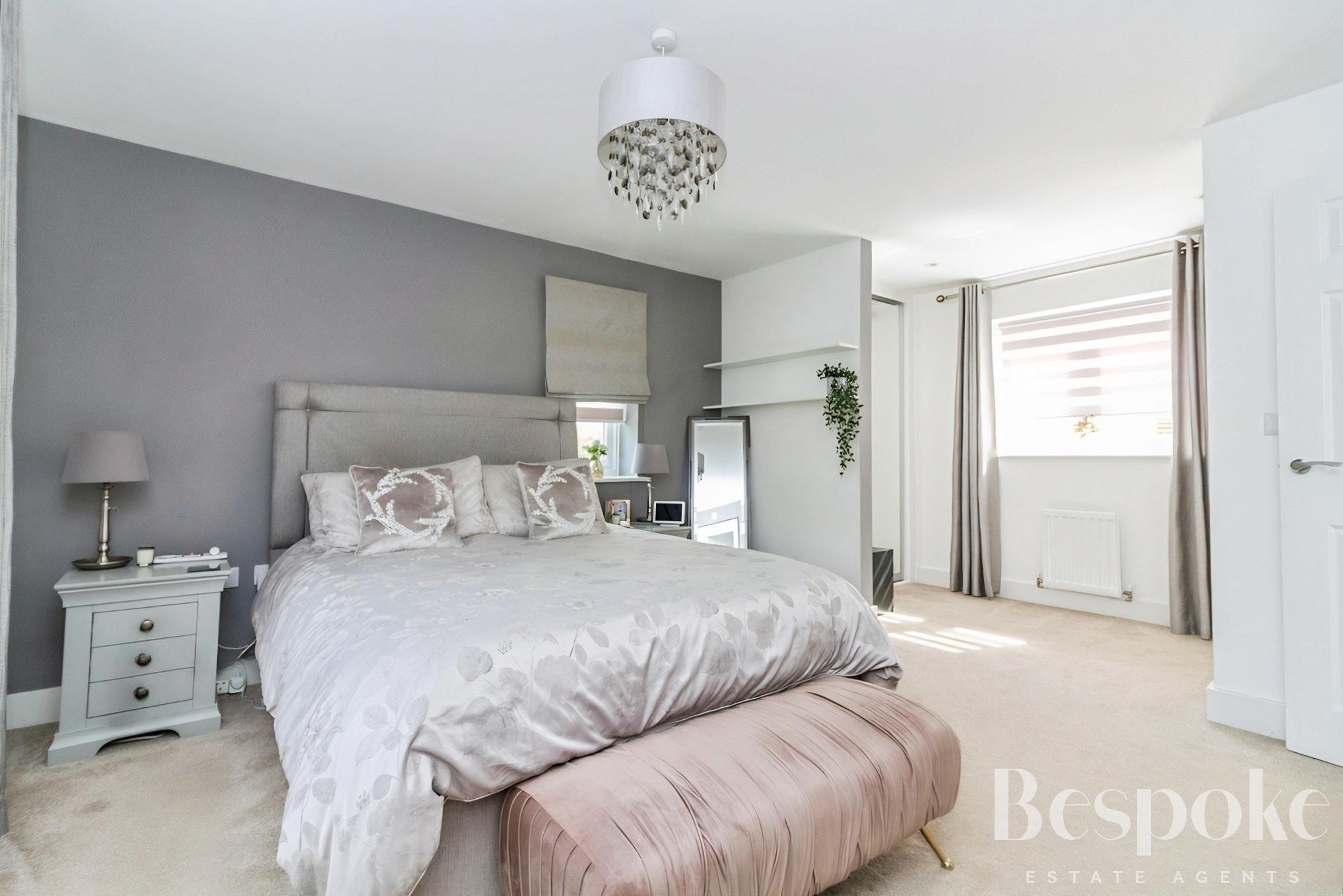 A spacious and well-balanced principal bedroom, forming part of a thoughtfully arranged suite with its own dressing room and en-suite shower room, offering both privacy and practicality.