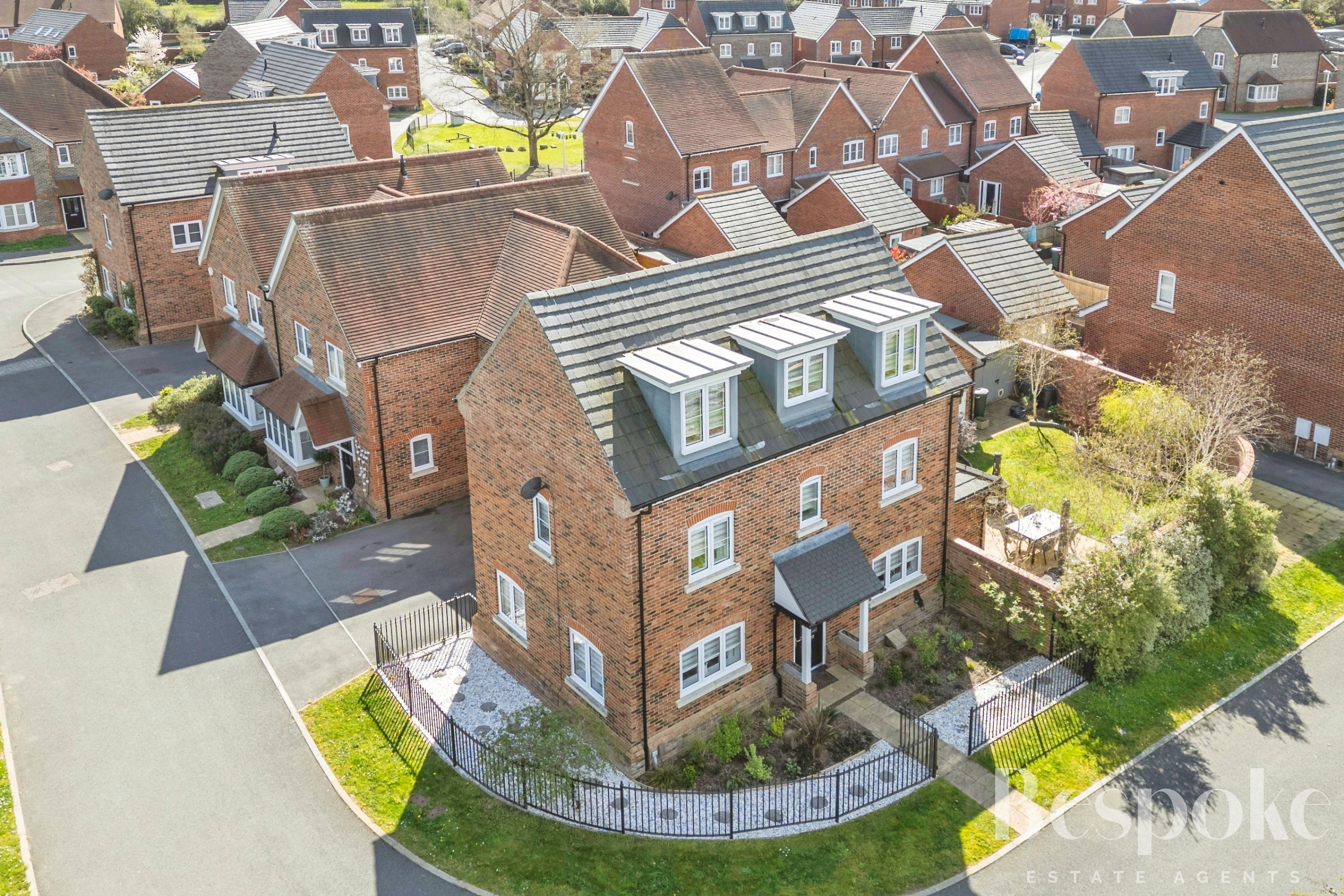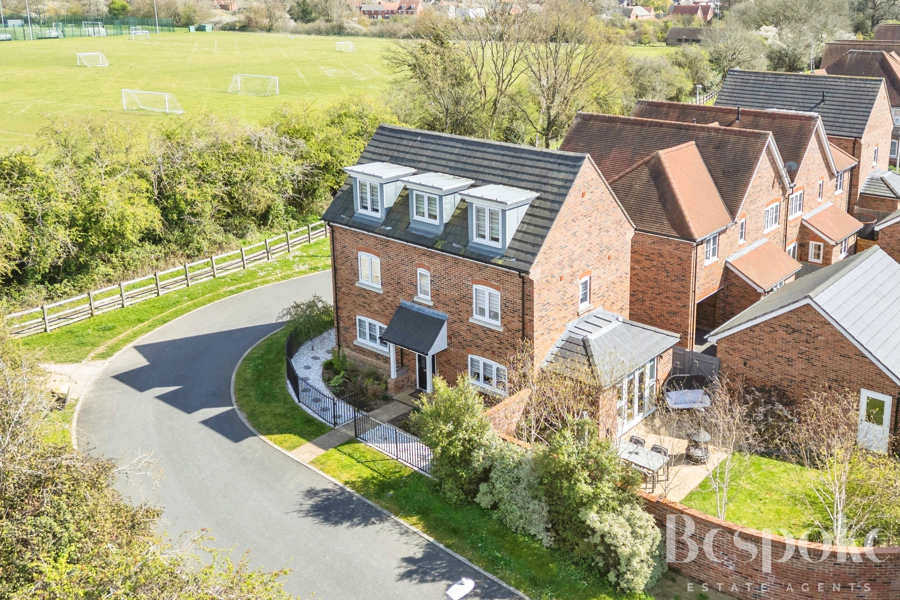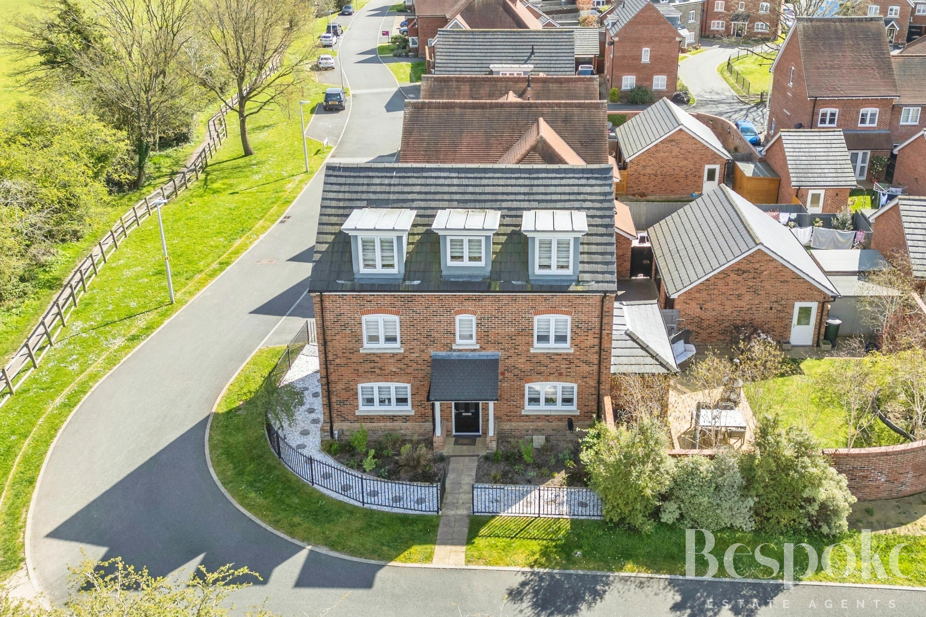 This beautifully presented four-bedroom detached home is set across three well-planned floors, combining contemporary styling with versatile family living. Positioned on a desirable corner plot on the sought-after Brambles development, the property enjoys a pleasant outlook adjacent to open green space.