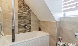 Fitted with a modern suite including a shower, wash hand basin and WC, finished in a clean, contemporary style.