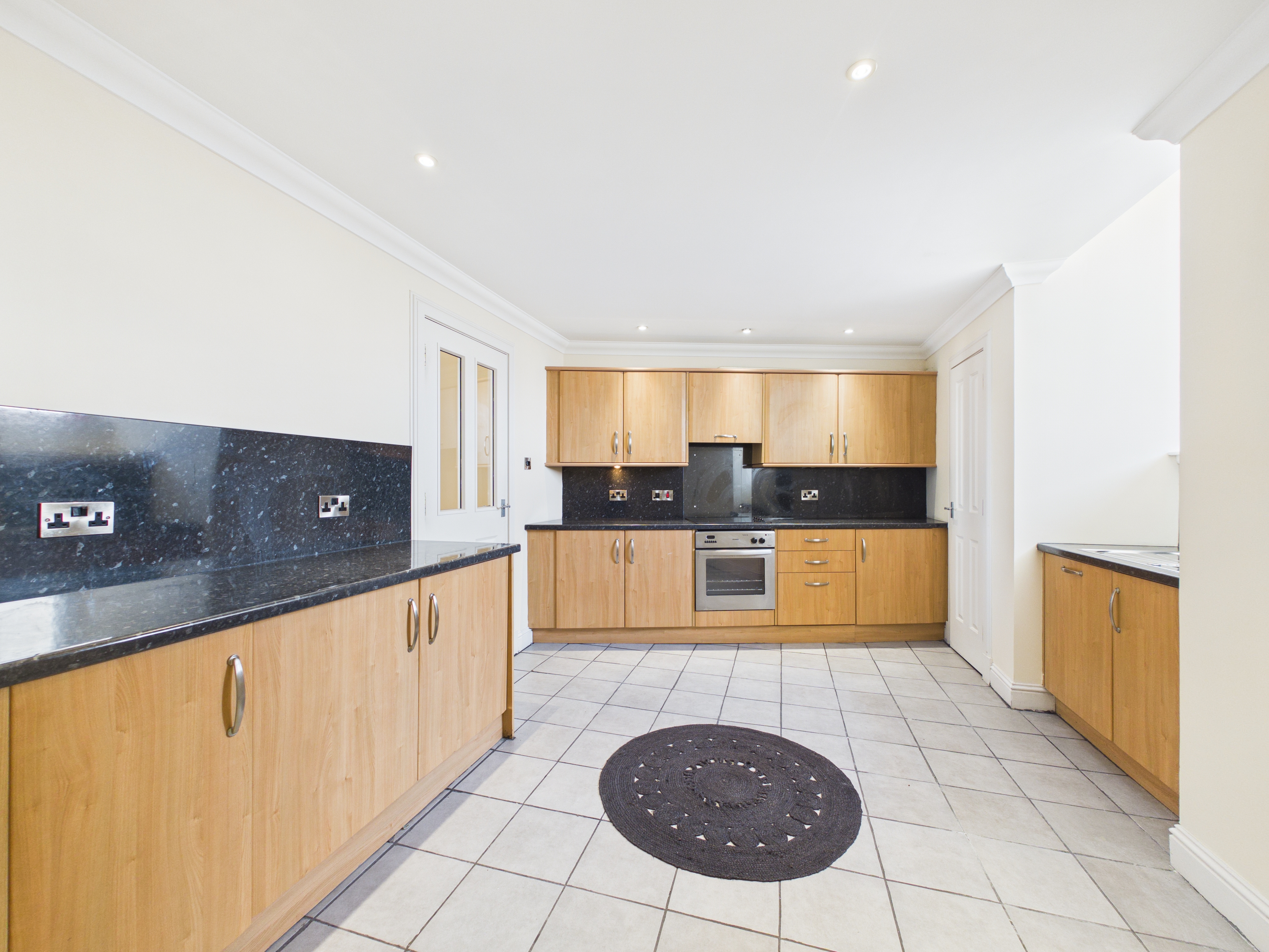 Internally, first floor accommodation comprises, entrance hallway, cloaks W.C, spacious dining kitchen with base and wall mounted units with dishwasher, oven and hob. Large lounge with oak flooring and ample storage space.